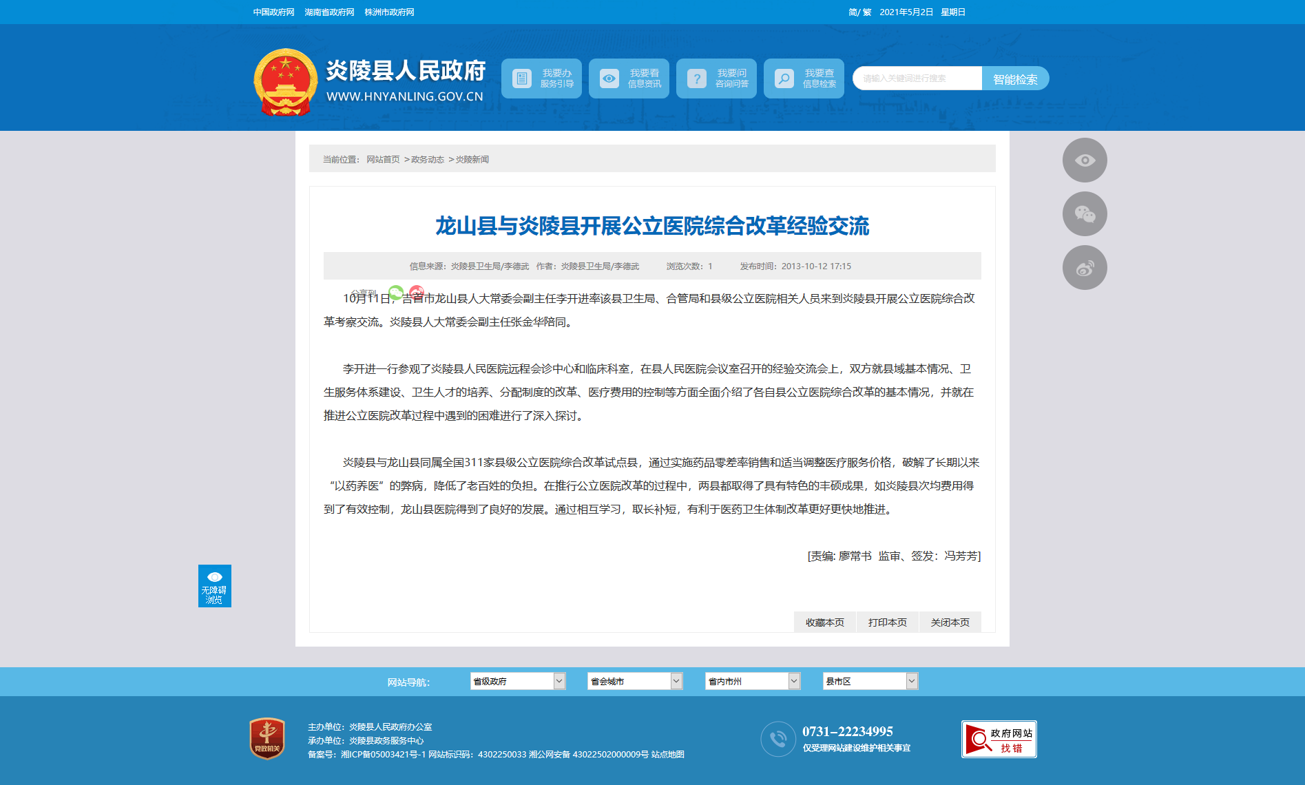 龙山县与炎陵县开展公立医院综合改革经验交流
