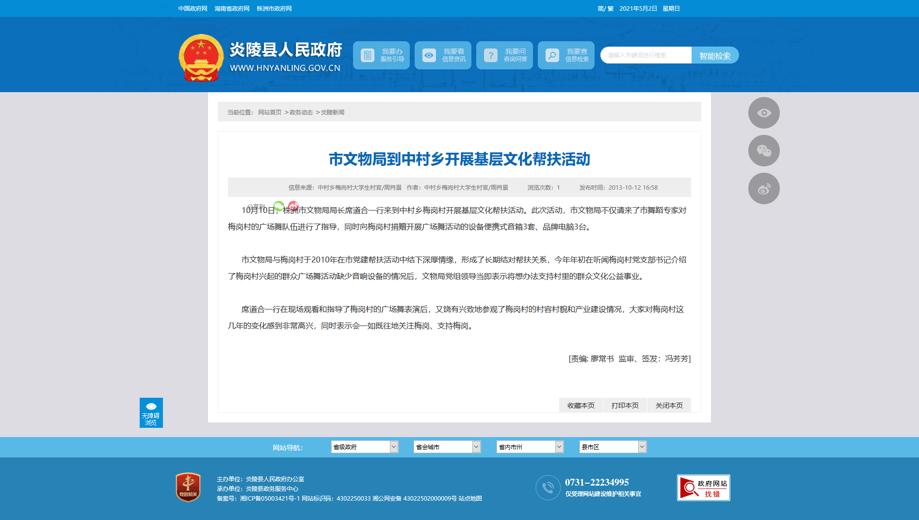 10月10日,株洲市文物局局长席道合一行来到中村乡梅岗村开展基层文化帮扶活动。此次活动,市文物局不仅请来了市舞蹈专家对梅岗村的广场舞队伍进行了指导,同时向梅岗村捐赠开展广场舞活动的设备便携式音箱3套、品牌电脑3台。