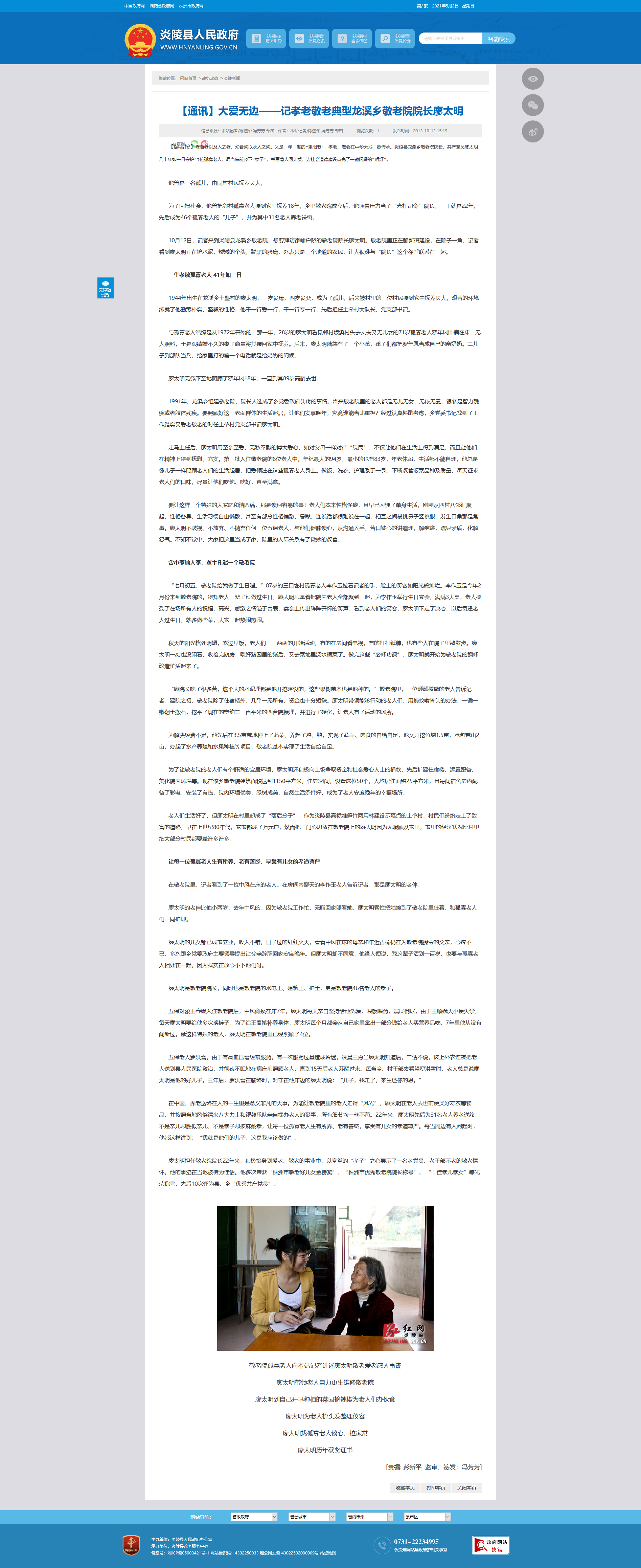 【通讯】大爱无边——记孝老敬老典型龙溪乡敬老院院长廖太明