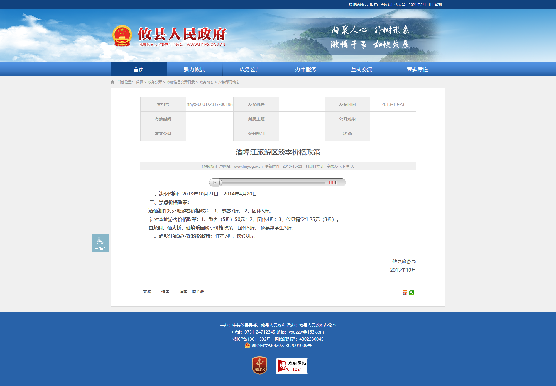 淡季价格政策:团体5折; 攸县籍学生3折。
