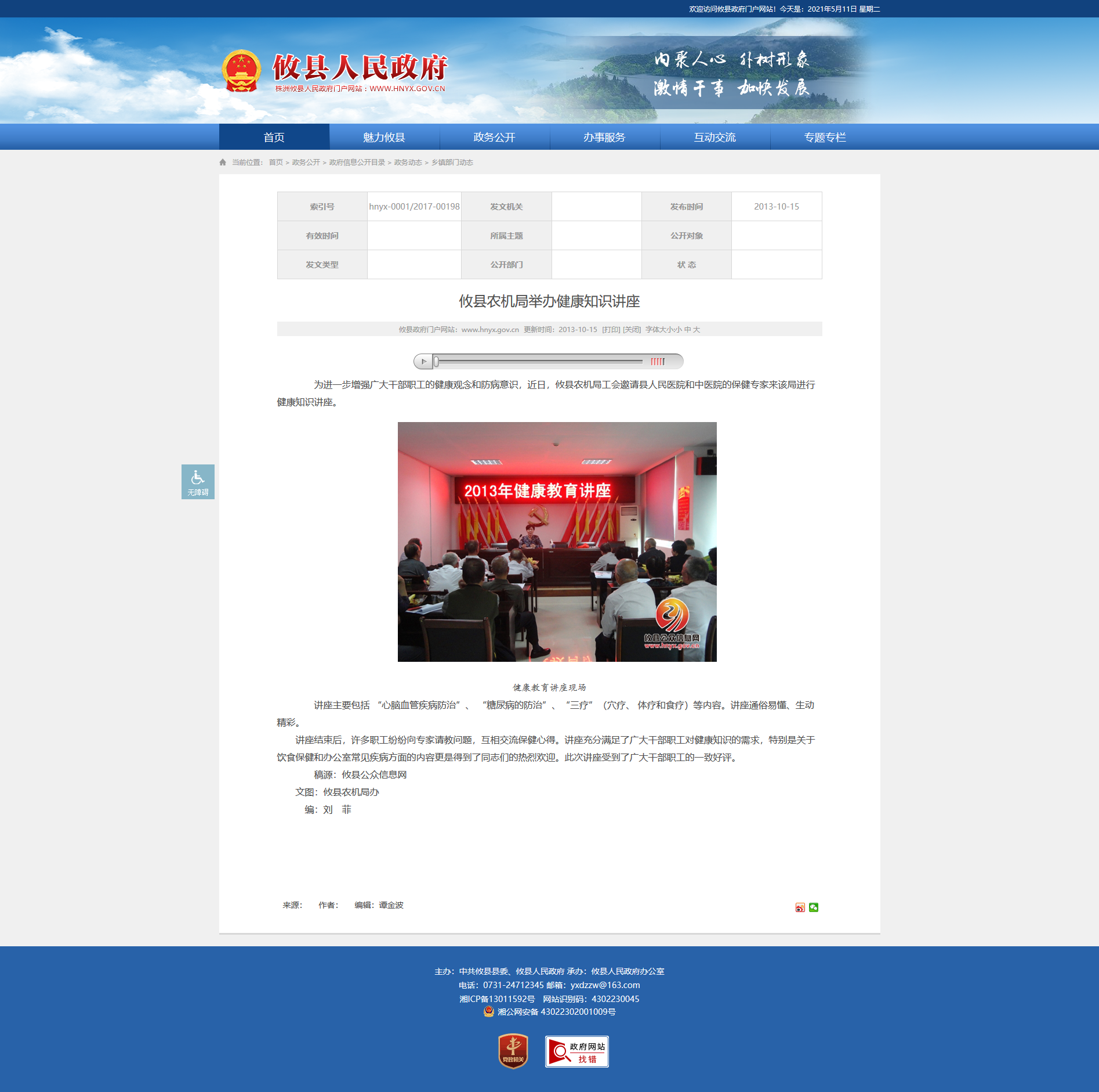 为进一步增强广大干部职工的健康观念和防病意识,近日,攸县农机局工会邀请县人民医院和中医院的保健专家来该局进行健康知识讲座。