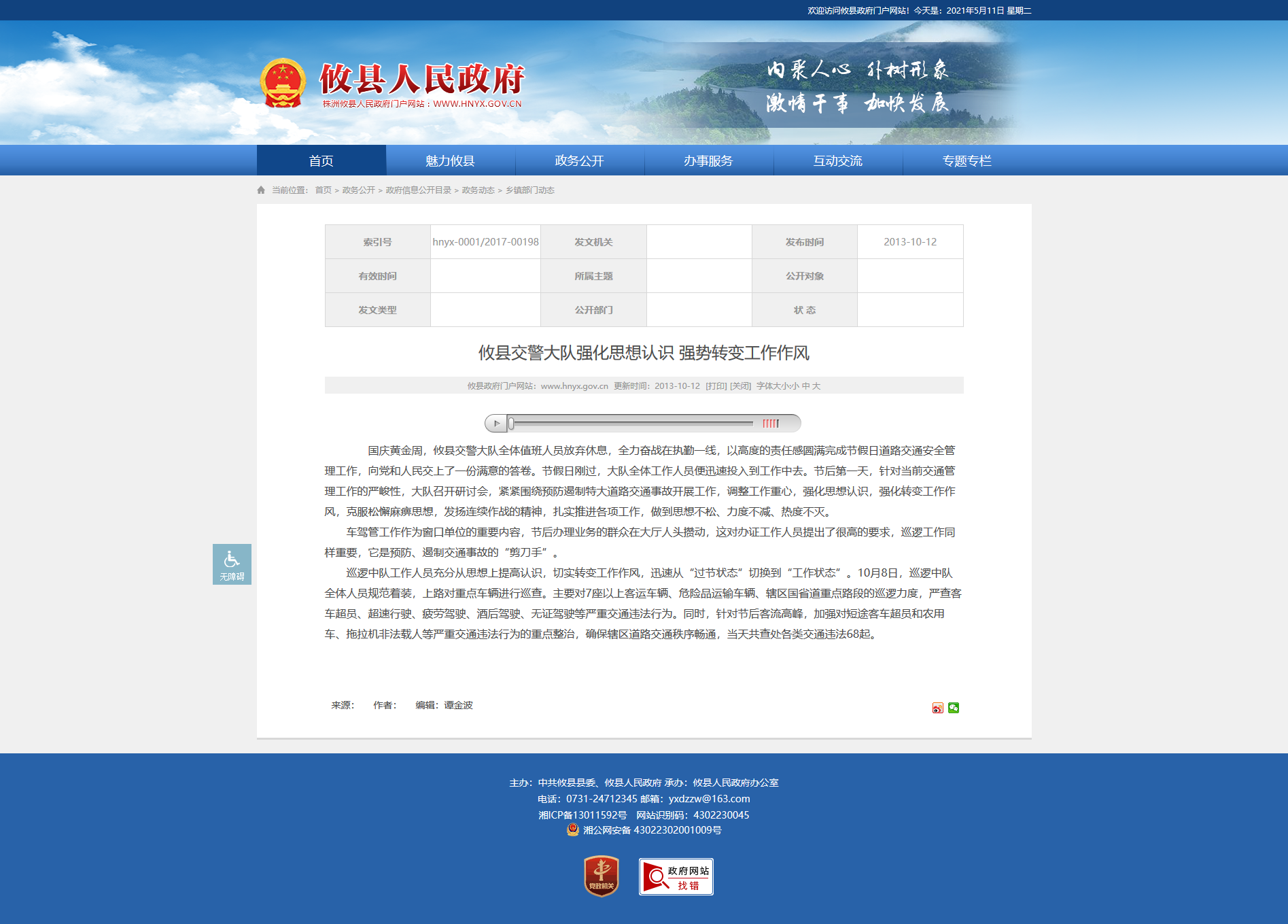 国庆黄金周,攸县交警大队全体值班人员放弃休息,全力奋战在执勤一线,以高度的责任感圆满完成节假日道路交通安全管理工作,向党和人民交上了一份满意的答卷。节假日刚过,大队全体工作人员便迅速投入到工作中去。节后第一天,针对当前交通管理工作的严峻性,大队召开研讨会,紧紧围绕预防遏制特大道路交通事故开展工作,调整工作重心,强化思想认识,强化转变工作作风,克服松懈麻痹思想,发扬连续作战的精神,扎实推进各项工作,做到思想不松、力度不减、热度不灭。