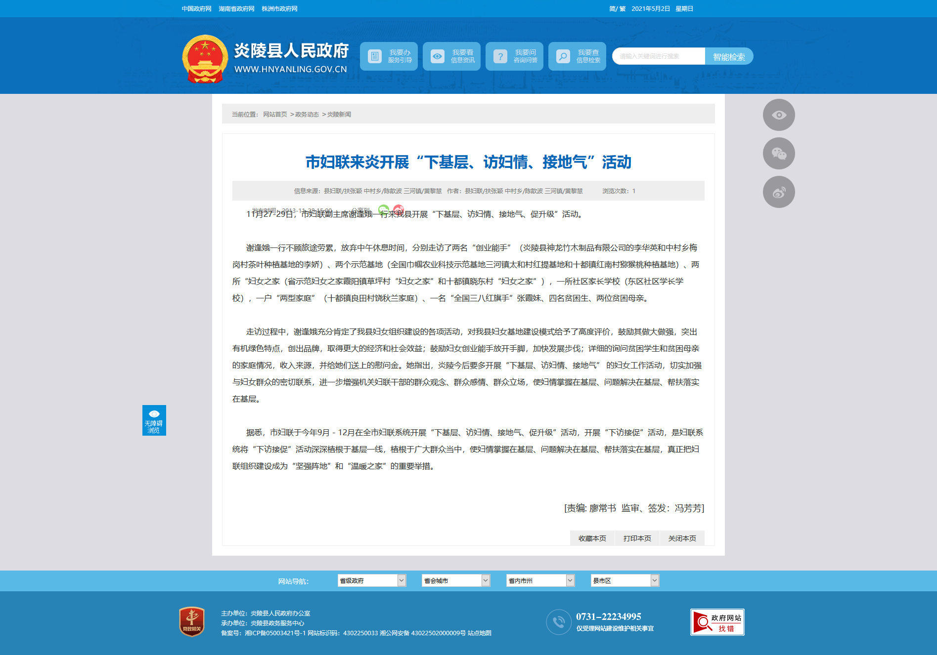 市妇联来炎开展“下基层、访妇情、接地气”活动