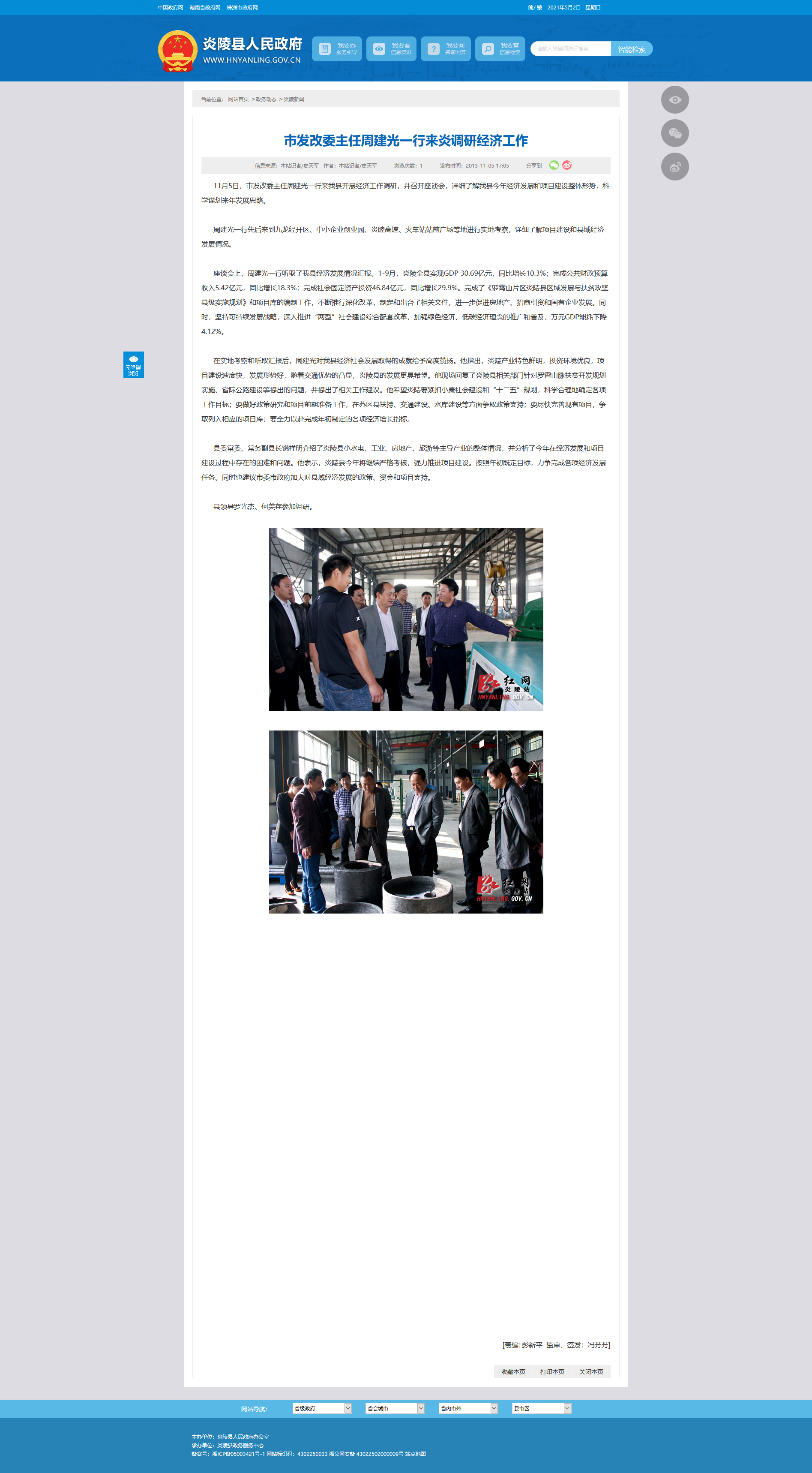 11月5日,市发改委主任周建光一行来我县开展经济工作调研,并召开座谈会,详细了解我县今年经济发展和项目建设整体形势,科学谋划来年发展思路。
