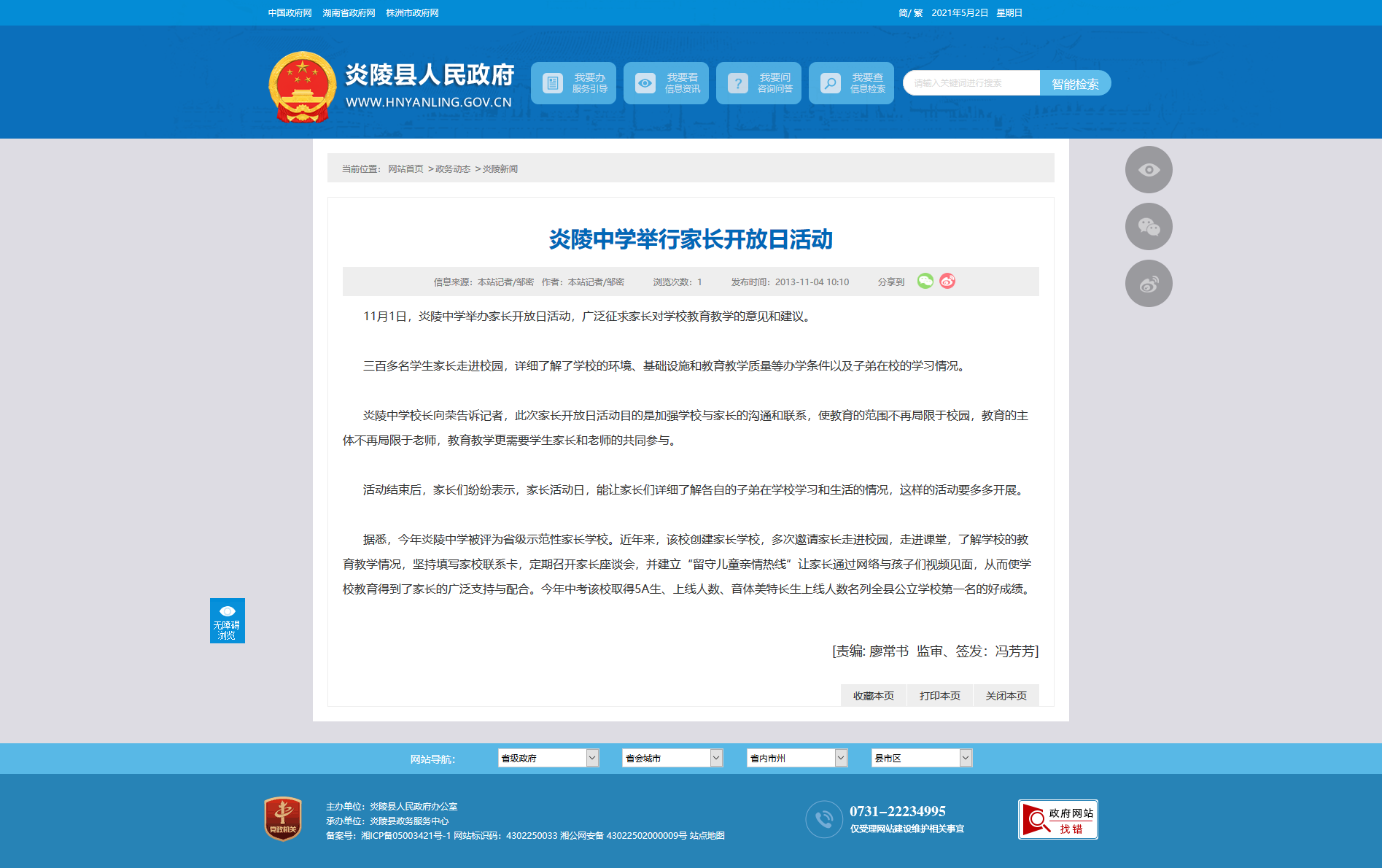 11月1日,炎陵中学举办家长开放日活动,广泛征求家长对学校教育教学的意见和建议。