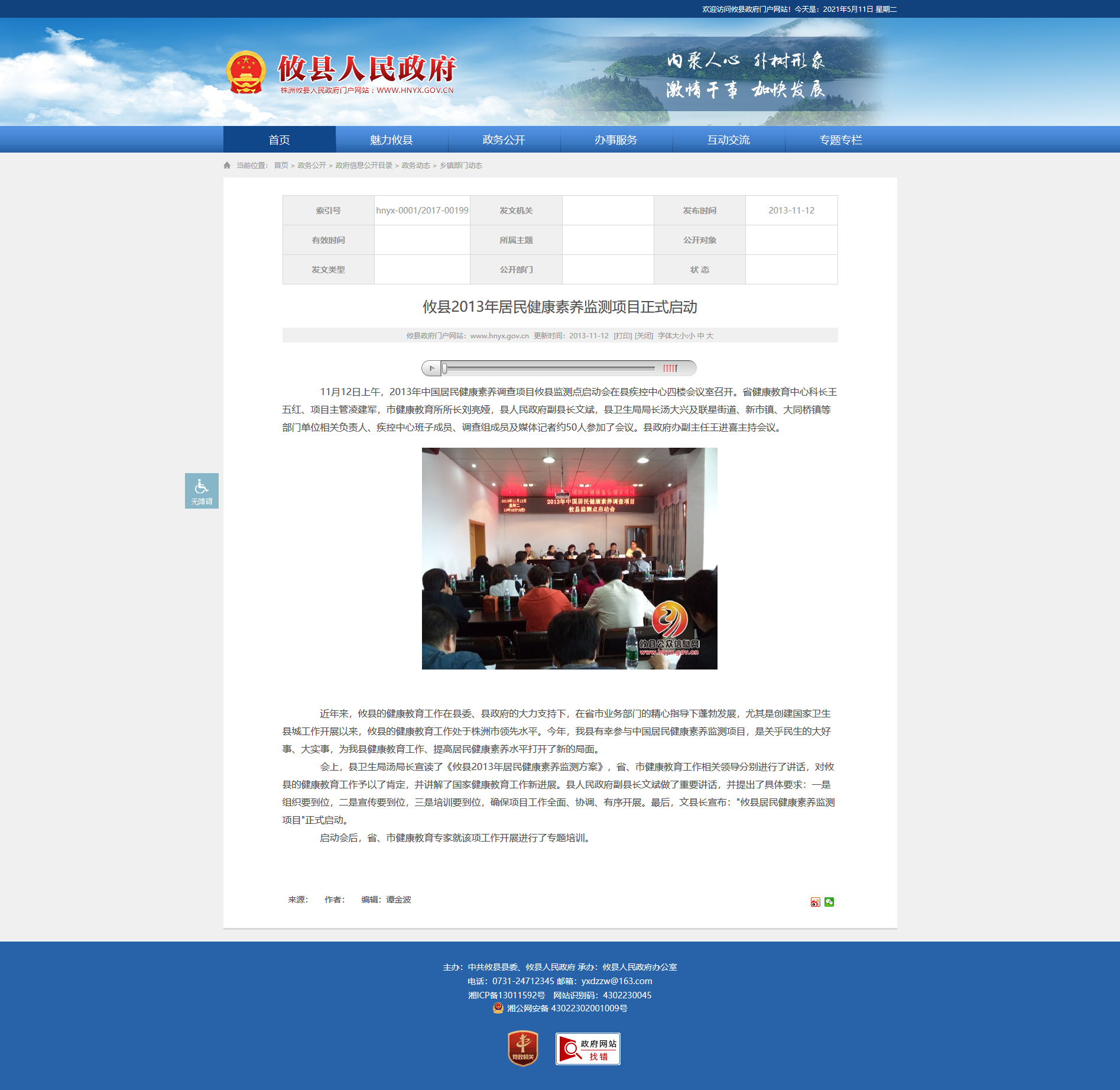 会上,县卫生局汤局长宣读了《攸县2013年居民健康素养监测方案》,省、市健康教育工作相关领导分别进行了讲话,对攸县的健康教育工作予以了肯定,并讲解了国家健康教育工作新进展。县人民政府副县长文斌做了重要讲话,并提出了具体要求:一是组织要到位,二是宣传要到位,三是培训要到位,确保项目工作全面、协调、有序开展。最后,文县长宣布:"攸县居民健康素养监测项目"正式启动。