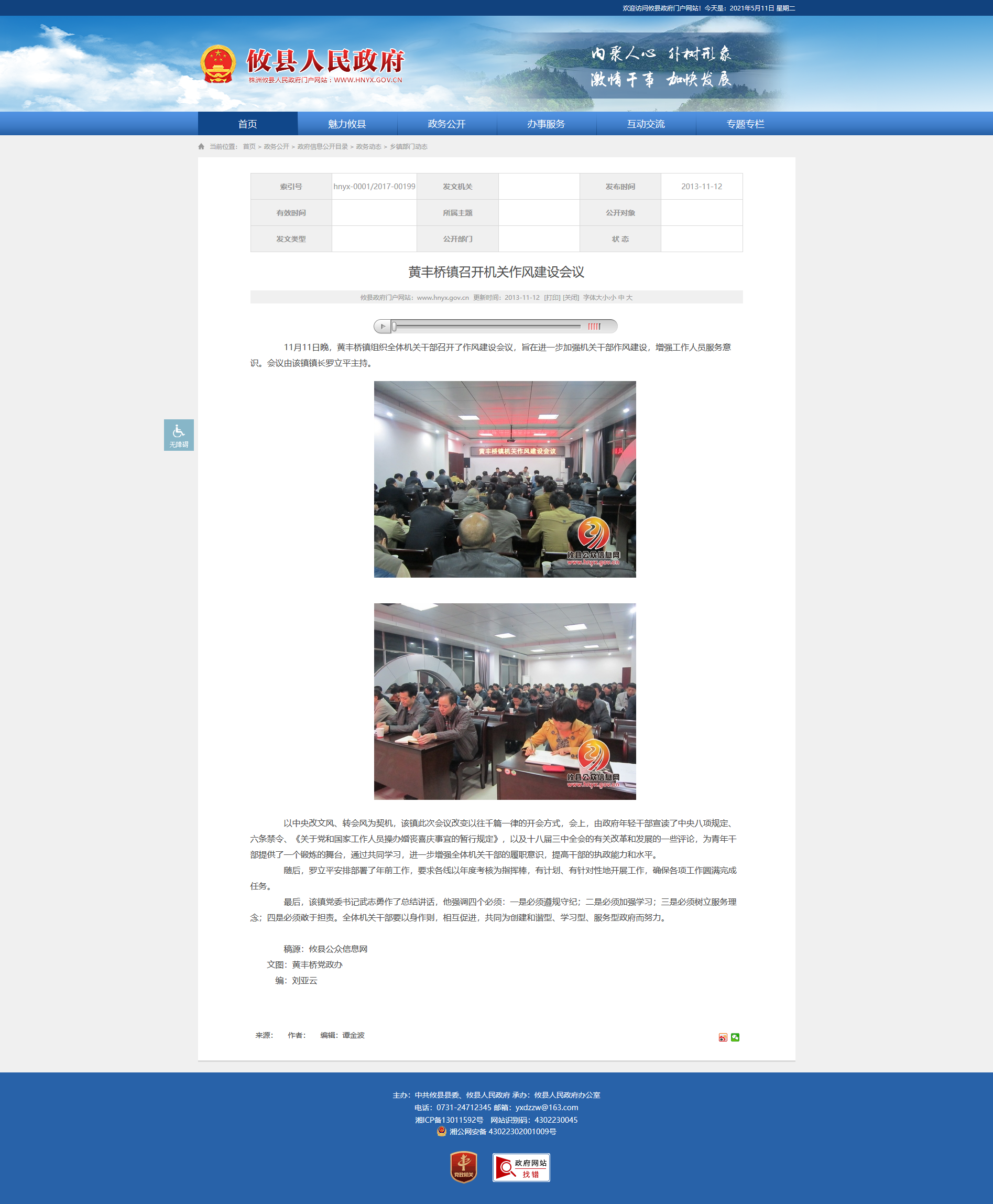 11月11日晚,黄丰桥镇组织全体机关干部召开了作风建设会议,旨在进一步加强机关干部作风建设,增强工作人员服务意识。会议由该镇镇长罗立平主持。