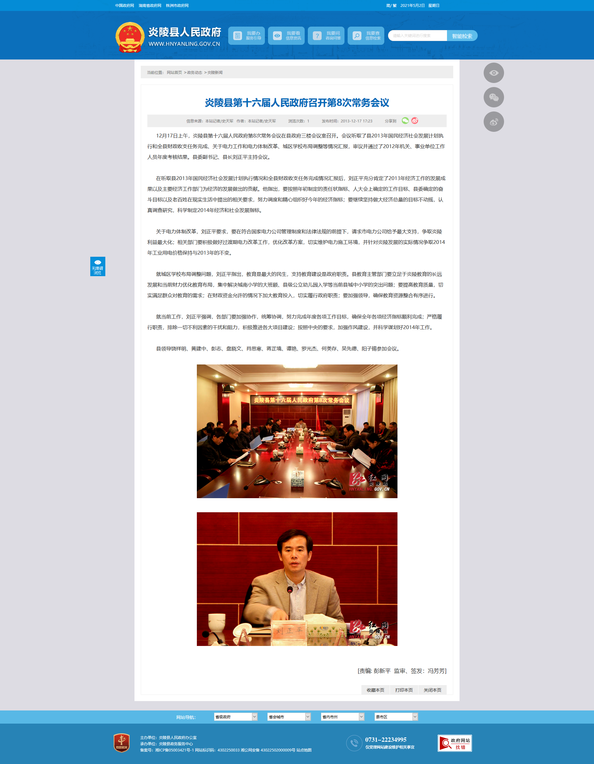 12月17日上午,炎陵县第十六届人民政府第8次常务会议在县政府三楼会议室召开。会议听取了县2013年国民经济社会发展计划执行和全县财政收支任务完成、关于电力工作和电力体制改革、城区学校布局调整等情况汇报,审议并通过了2012年机关、事业单位工作人员年度考核结果。县委副书记、县长刘正平主持会议。