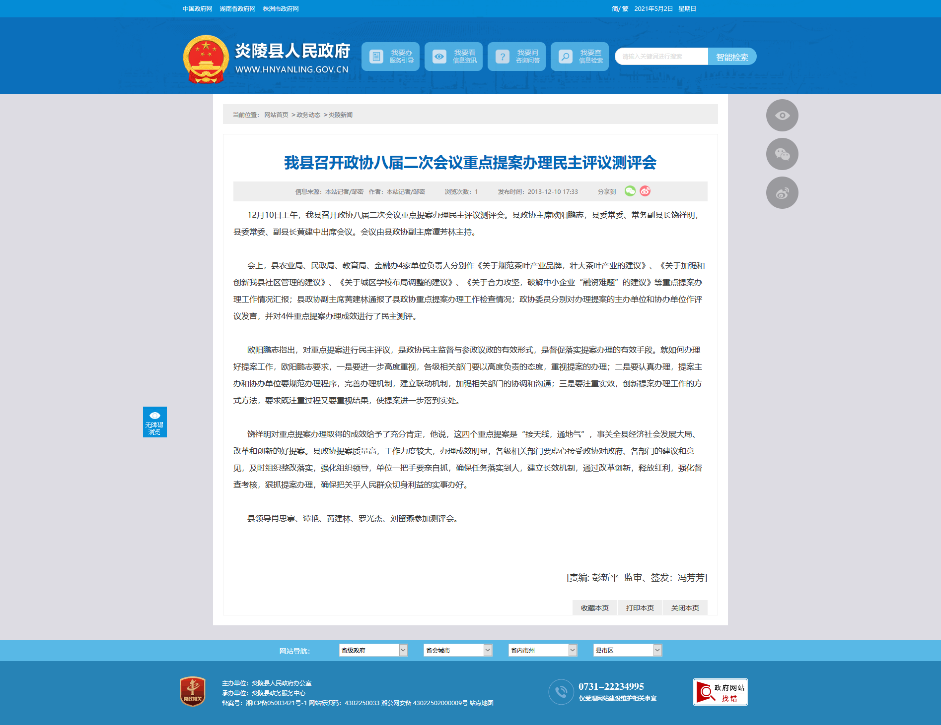 我县召开政协八届二次会议重点提案办理民主评议测评会