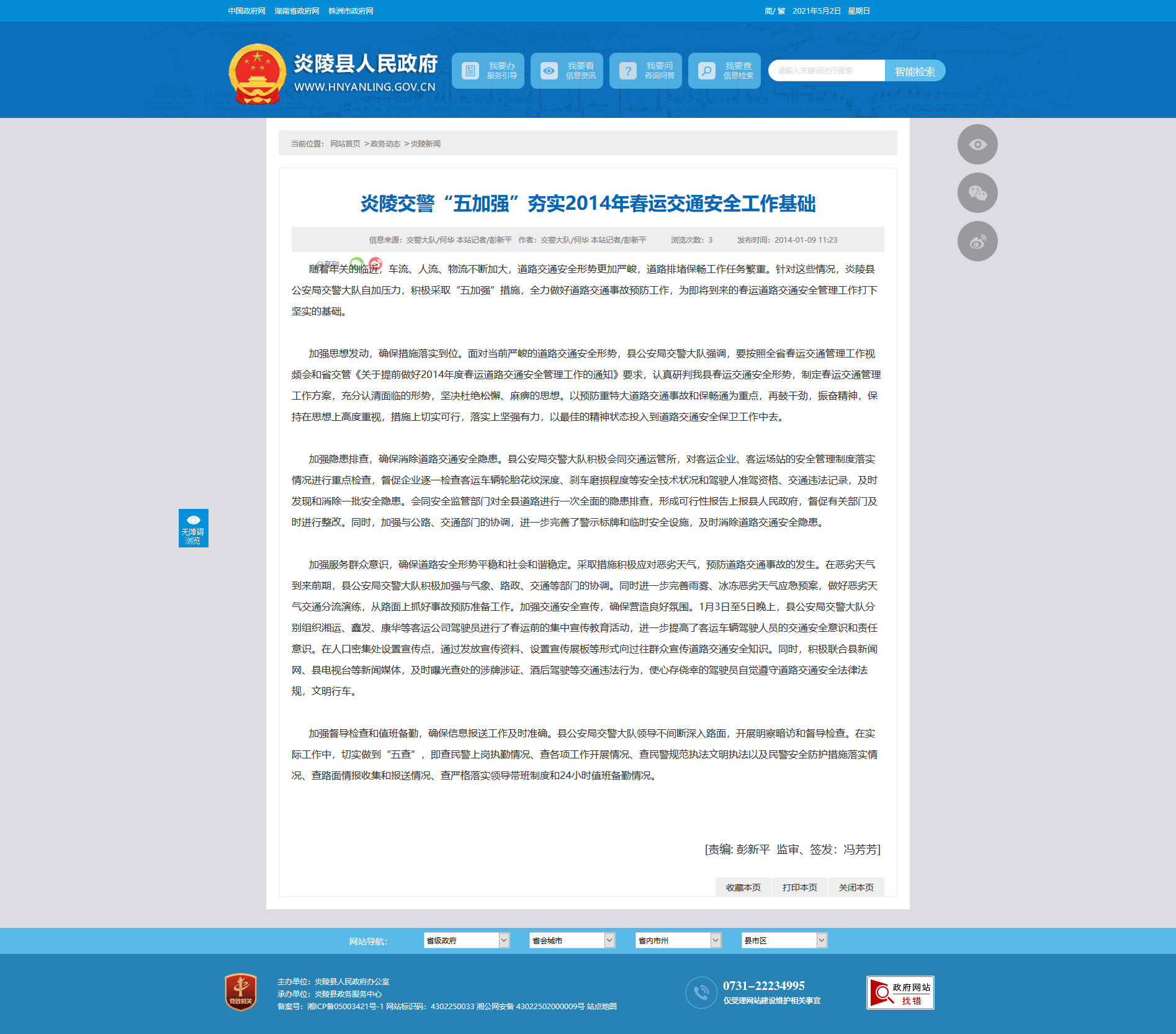 随着年关的临近,车流、人流、物流不断加大,道路交通安全形势更加严峻,道路排堵保畅工作任务繁重。针对这些情况,炎陵县公安局交警大队自加压力,积极采取“五加强”措施,全力做好道路交通事故预防工作,为即将到来的春运道路交通安全管理工作打下坚实的基础。