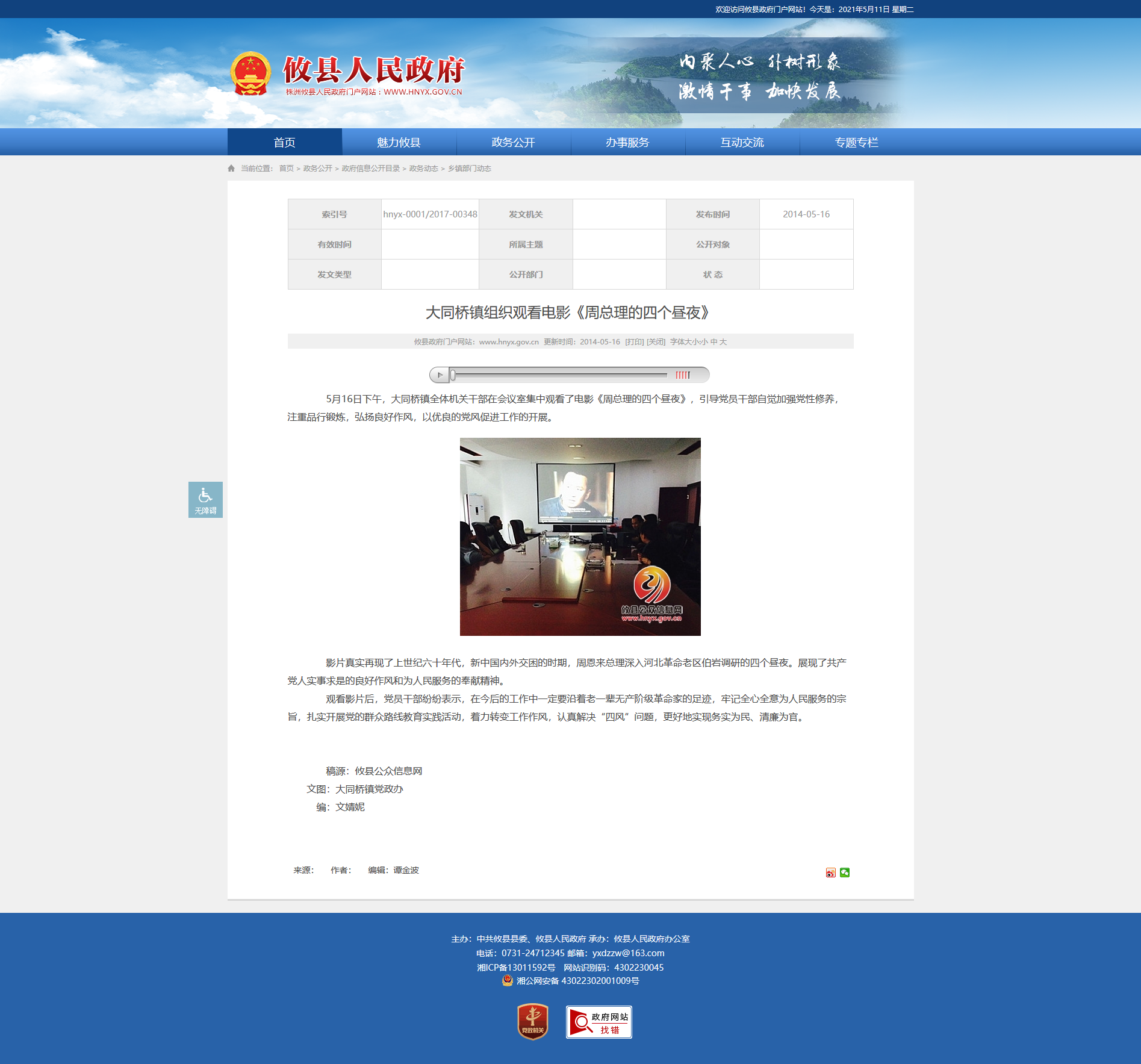 5月16日下午,大同桥镇全体机关干部在会议室集中观看了电影《周总理的四个昼夜》,引导党员干部自觉加强党性修养,注重品行锻炼,弘扬良好作风,以优良的党风促进工作的开展。