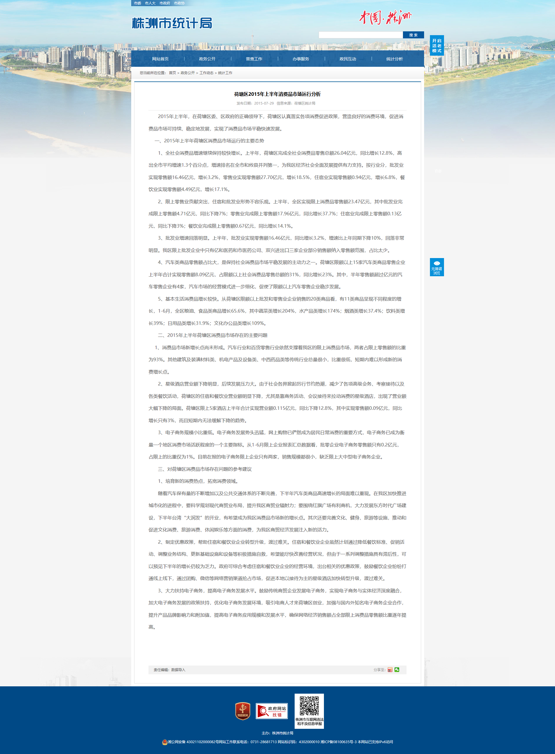 2015年上半年,在荷塘区委、区政府的正确领导下,荷塘区认真落实各项消费促进政策,营造良好的消费环境,促进消费品市场可持续、稳定地发展,实现了消费品市场平稳快速发展。 一、2015年上半年荷塘区消费品市场运行的主要态势 1、全社会消费品增速继续保持较快增长。上半年,荷塘区完成全社会消费品零售总额26.04亿元,同比增长12.8%,高出全市平均增速1.3个百分点,增速排名在全市和攸县并列第一,为我区经济社会全面发展提供有力支持。按行业分,批发业实现零售额16.46亿元,增长3.2%,零售业实现零售额27.70亿元,增长18.5%,住宿业实现零售额0.94亿元,增长6.8%,餐饮业实现零售额4.49亿元,增长17.1%。 2、限上零售业贡献突出,住宿和批发业形势不容乐观。上半年,全区实现限上消费品零售额23.47亿元,其中批发业完成限上零售额4.71亿元,同比下降7%;零售业完成限上零售额17.96亿元,同比增长37.7%;住宿业完成限上零售额0.13亿元,同比下降3%;餐饮业完成限上零售额0.67亿元,同比增长14.1%。3、批发业增速回落明显。上半年,批发业实现零售额16.46亿元,同比增长3.2%,增速比上年同期下降10%,回落非常明显。我区限上批发企业中只有亿和医药和市医药公司、双兴进出口三家企业部分销售额纳入零售额范围,占比太少。4、汽车类商品零售额占比大,是保持社会消费品市场平稳发展的主动力之一。荷塘区限额以上15家汽车类商品零售企业上半年合计实现零售额8.09亿元,占限额以上社会消费品零售总额的31%,同比增长23%。其中,半年零售额超过亿元的汽车零售企业有4家,汽车市场的经营模式进一步细化,促使了限额以上汽车零售企业稳步发展。5、基本生活消费品增长较快。从荷塘区限额以上批发和零售业企业销售的20类商品看,有11类商品呈现不同程度的增长,1-6月,全区粮油、食品类商品增长65.6%,其中蔬菜类增长204%,水产品类增长174%;烟酒类增长37.4%;饮料类增长39%;日用品类增长31.9%;文化办公品类增长109%。二、2015年上半年荷塘区消费品市场存在的主要问题 1、消费品市场新增长点尚未形成。汽车行业和百货零售行业依然支撑着我区的限上消费品市场,两者占限上零售额的比重为93%。其他建筑及装潢材料类、机电产品及设备类、中西药品类等传统行业总量很小,比重很低,短期内难以形成新的消费增长点。2、星级酒店营业额下降明显,后续发展压力大。由于社会各界掀起厉行节约热潮,减少了各项高级会务、考察接待以及各类餐饮活动,荷塘区的住宿和餐饮业营业额明显下降,尤其是靠商务活动、会议接待来拉动消费的星级酒店,出现了营业额大幅下降的局面。荷塘区限上5家酒店上半年合计实现营业额0.115亿元,同比下降12.8%,其中实现零售额0.09亿元,同比增长只有3%,而且短期内无法缓解下降的趋势。3、电子商务规模小比重低。电子商务发展势头迅猛,网上购物已俨然成为居民日常消费的重要方式,电子商务已成为衡量一个地区消费市场活跃程度的一个主要指标。从1-6月限上企业报表汇总数据看,批零企业电子商务零售额只有0.2亿元,占限上的比重仅为1%。目前在报的电子商务限上企业只有两家,销售规模都很小,缺乏限上大中型电子商务企业。三、对荷塘区消费品市场存在问题的参考建议1、培育新的消费热点,拓宽消费领域。随着汽车保有量的不断增加以及公共交通体系的不断完善,下半年汽车类商品高速增长的局面难以重现。在我区加快推进城市化的进程中,要科学规划现代商贸业布局,提升我区商贸业辐射力;要围绕红旗广场有利商机,大力发展东方时代广场建设,下半年台湾“大润发”的开业,有希望成为我区消费品市场新的增长点。其次还要完善文化、健身、旅游等设施,推动和促进文化消费、旅游消费、休闲娱乐等方面的消费,为我区商贸经济发展注入新的活力。2、制定优惠政策,帮助住宿和餐饮业企业转型升级,渡过难关。住宿和餐饮业企业虽然计划通过降低餐饮标准、促销活动、调整业务结构、更新基础设施和设备等积极措施自救,希望能尽快改善经营状况,但由于一系列调整措施具有滞后性,可以预见下半年的增长仍较为乏力。政府可综合考虑住宿和餐饮业企业的经营环境,出台相关的优惠政策,鼓励餐饮企业纷纷打通线上线下,通过团购、微信等网络营销渠道抢占市场,促进本地以接待为主的星级酒店加快转型升级,渡过难关。3、大力扶持电子商务,提高电子商务发展水平。鼓励传统商贸企业发展电子商务,实现电子商务与实体经济深度融合,加大电子商务发展的政策扶持,优化电子商务发展环境,吸引电商人才来荷塘区创业,加强与国内外知名电子商务企业合作,提升产品品牌影响力和附加值,提高电子商务应用规模和发展水平,确保网络经济销售额占全部限上消费品零售额比重逐年提高。