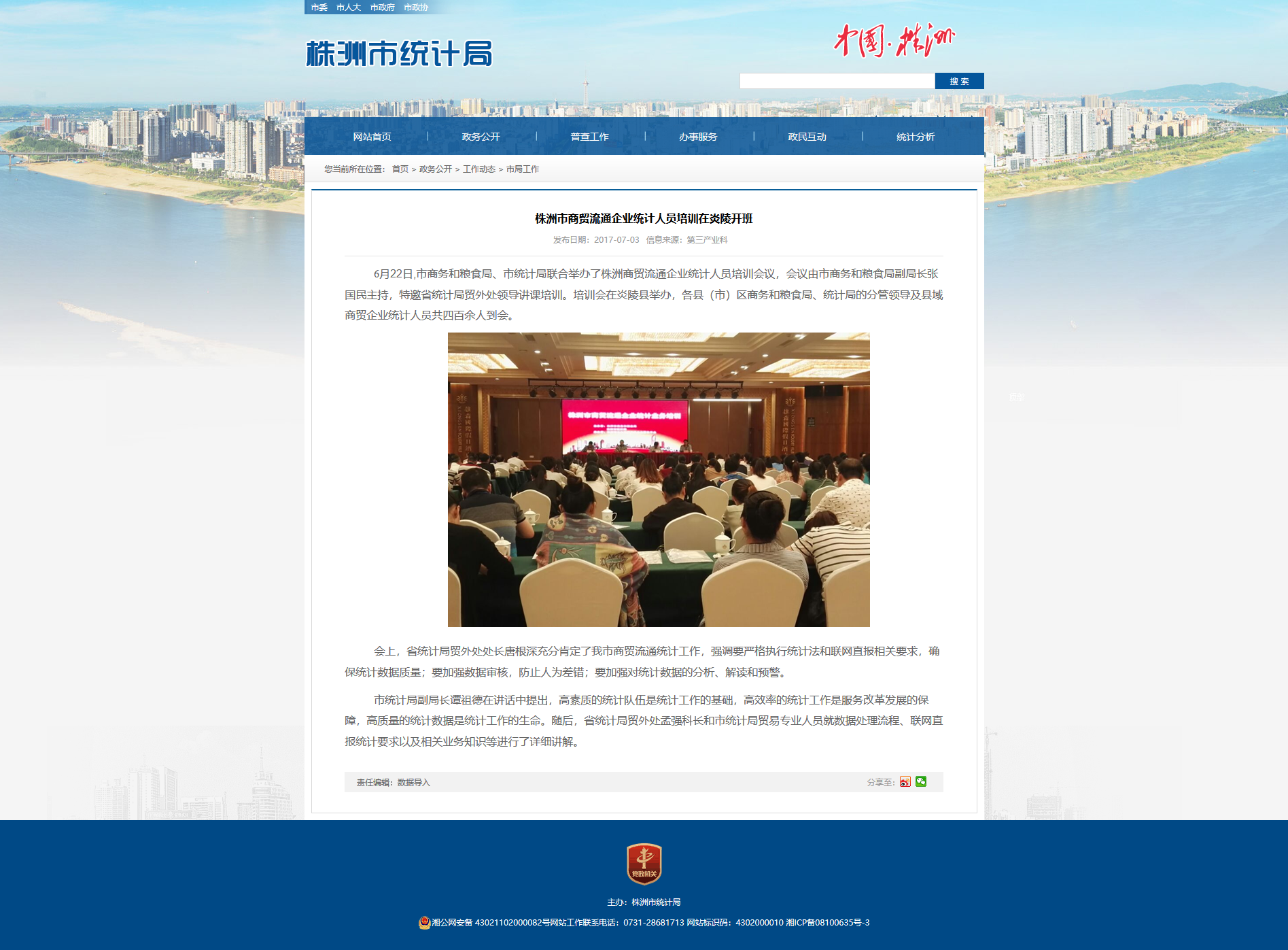 6月22日,市商务和粮食局、市统计局联合举办了株洲商贸流通企业统计人员培训会议,会议由市商务和粮食局副局长张国民主持,特邀省统计局贸外处领导讲课培训。培训会在炎陵县举办,各县(市)区商务和粮食局、统计局的分管领导及县域商贸企业统计人员共四百余人到会。