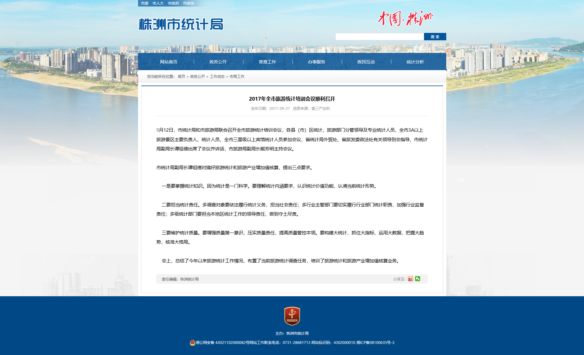 9月12日,市统计局和市旅游局联合召开全市旅游统计培训会议,各县(市)区统计、旅游部门分管领导及专业统计人员、全市3A以上旅游景区主要负责人、统计人员、全市三星级以上宾馆统计人员参加会议,省统计局外贸处、省旅发委政法处有关领导到会指导,市统计局副局长谭祖德出席了会议并讲话,市旅游局副局长熊芳明主持会议。