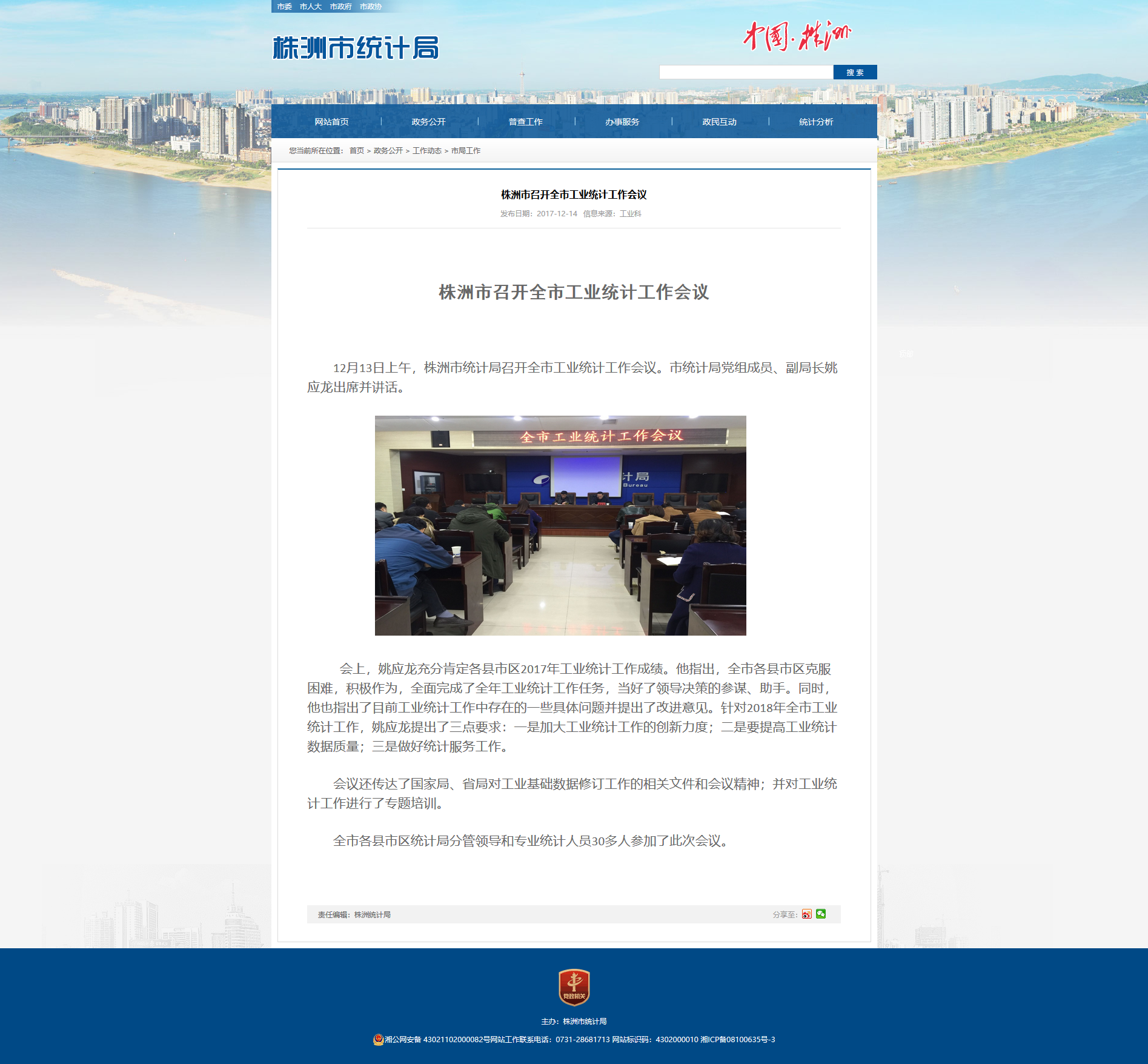 12月13日上午,株洲市统计局召开全市工业统计工作会议。市统计局党组成员、副局长姚应龙出席并讲话。