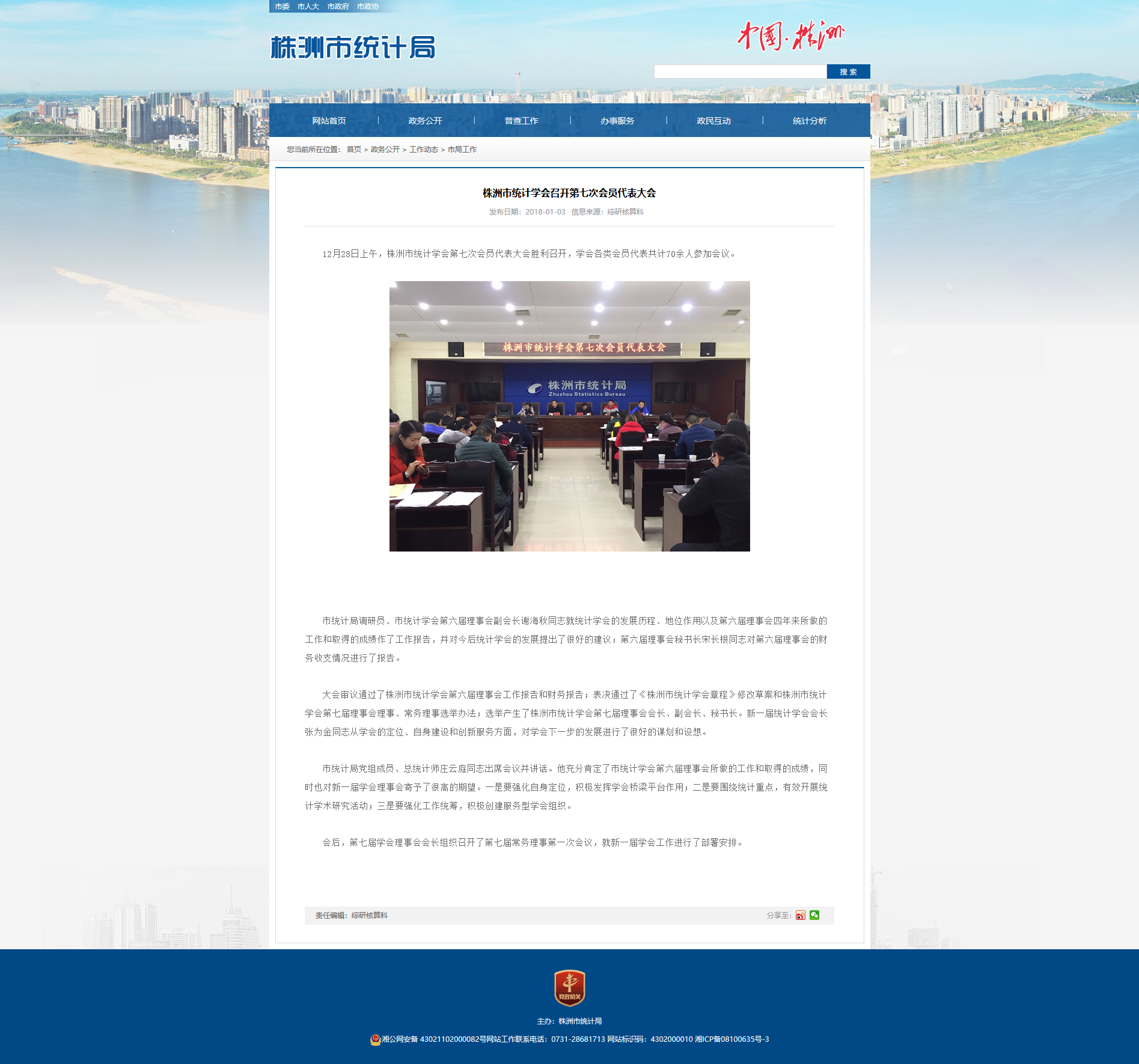 12月28日上午,株洲市统计学会第七次会员代表大会胜利召开,学会各类会员代表共计70余人参加会议。