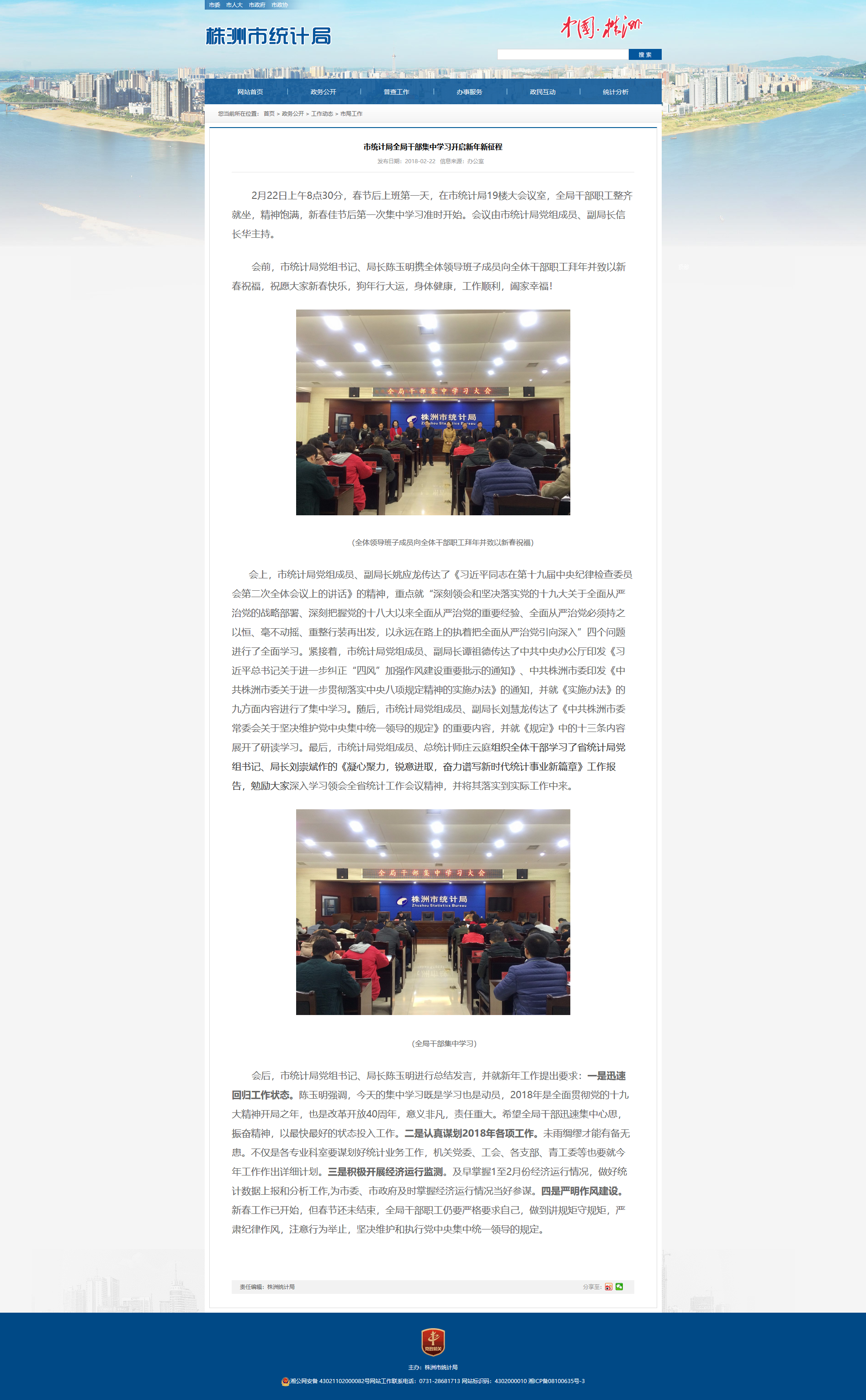会前,市统计局党组书记、局长陈玉明携全体领导班子成员向全体干部职工拜年并致以新春祝福,祝愿大家新春快乐,狗年行大运,身体健康,工作顺利,阖家幸福!