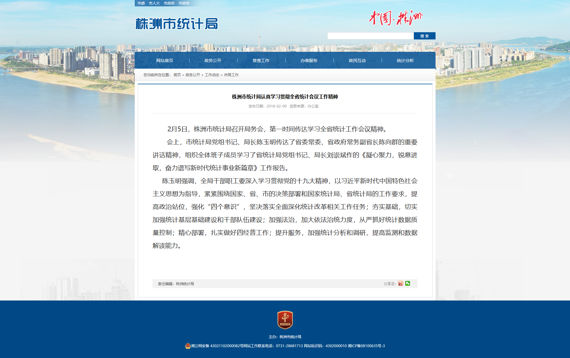 2月5日,株洲市统计局召开局务会,第一时间传达学习全省统计工作会议精神。