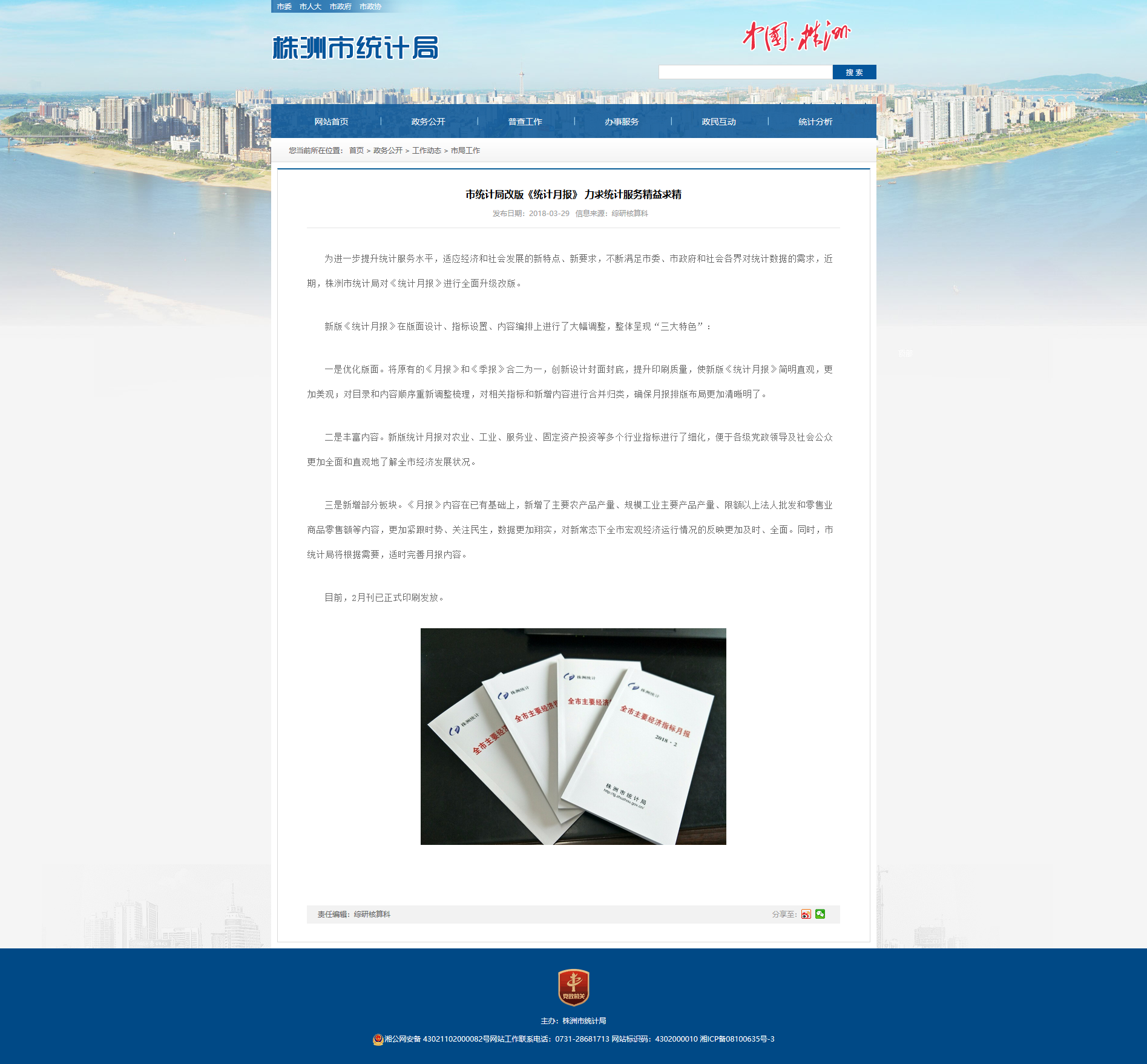 为进一步提升统计服务水平,适应经济和社会发展的新特点、新要求,不断满足市委、市政府和社会各界对统计数据的需求,近期,株洲市统计局对《统计月报》进行全面升级改版。