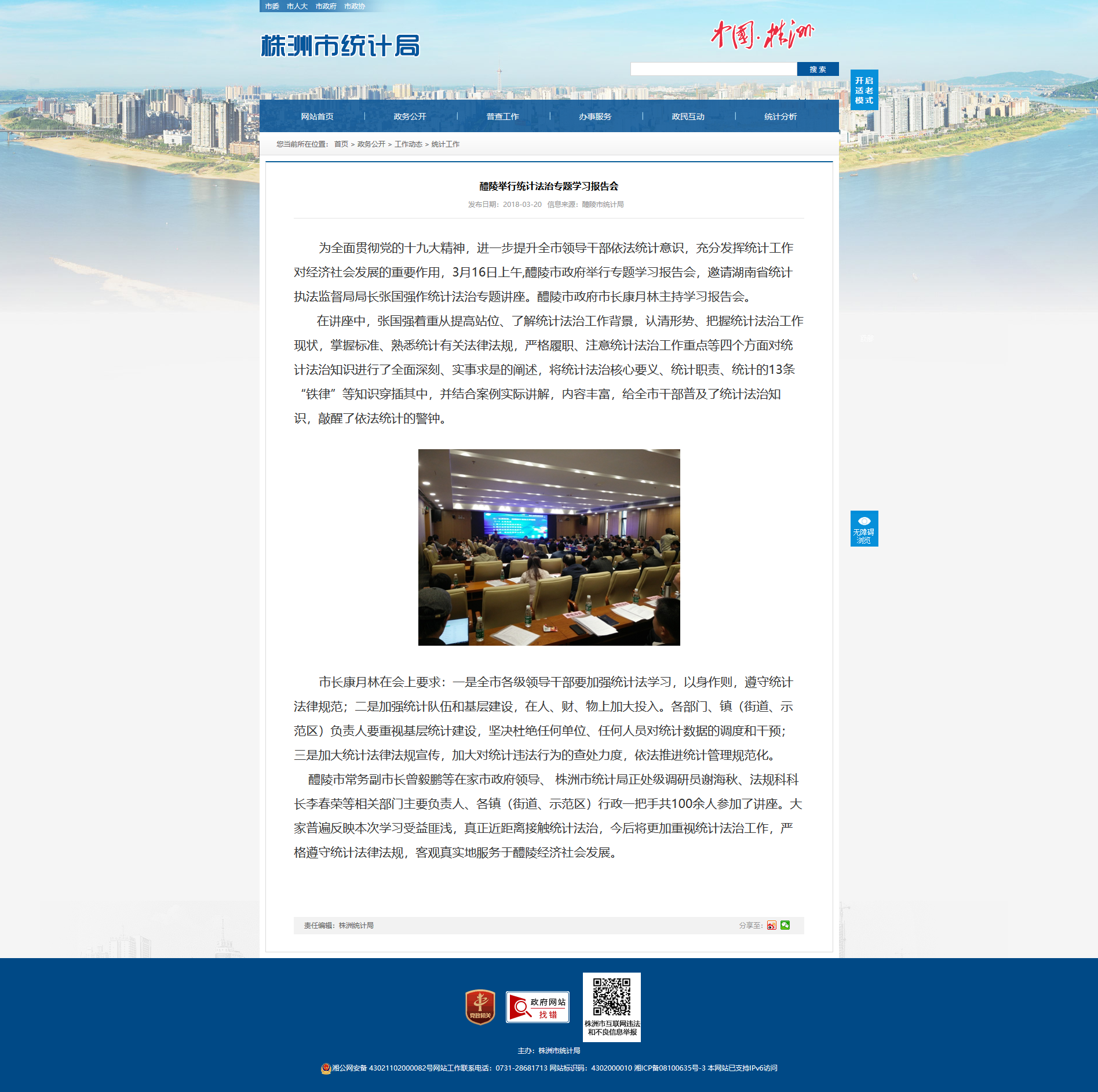 为全面贯彻党的十九大精神,进一步提升全市领导干部依法统计意识,充分发挥统计工作对经济社会发展的重要作用,3月16日上午,醴陵市政府举行专题学习报告会,邀请湖南省统计执法监督局局长张国强作统计法治专题讲座。醴陵市政府市长康月林主持学习报告会。