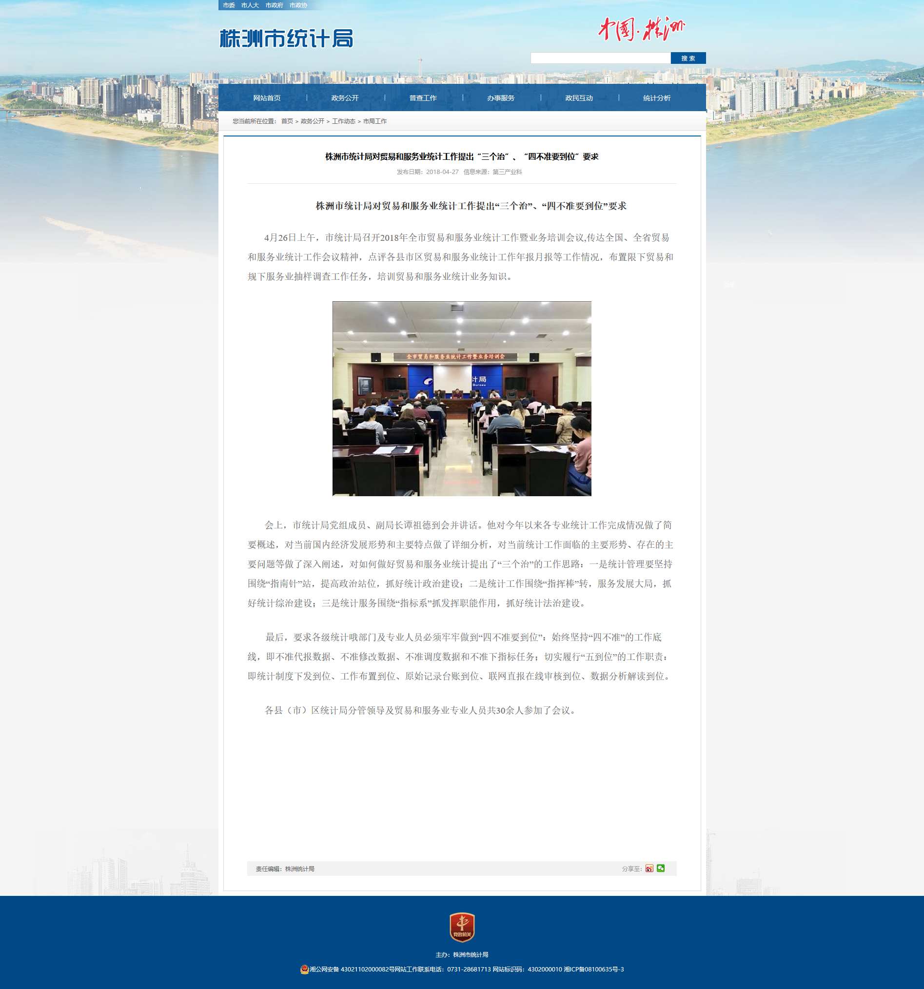 株洲市统计局对贸易和服务业统计工作提出“三个治”、“四不准要到位”要求
