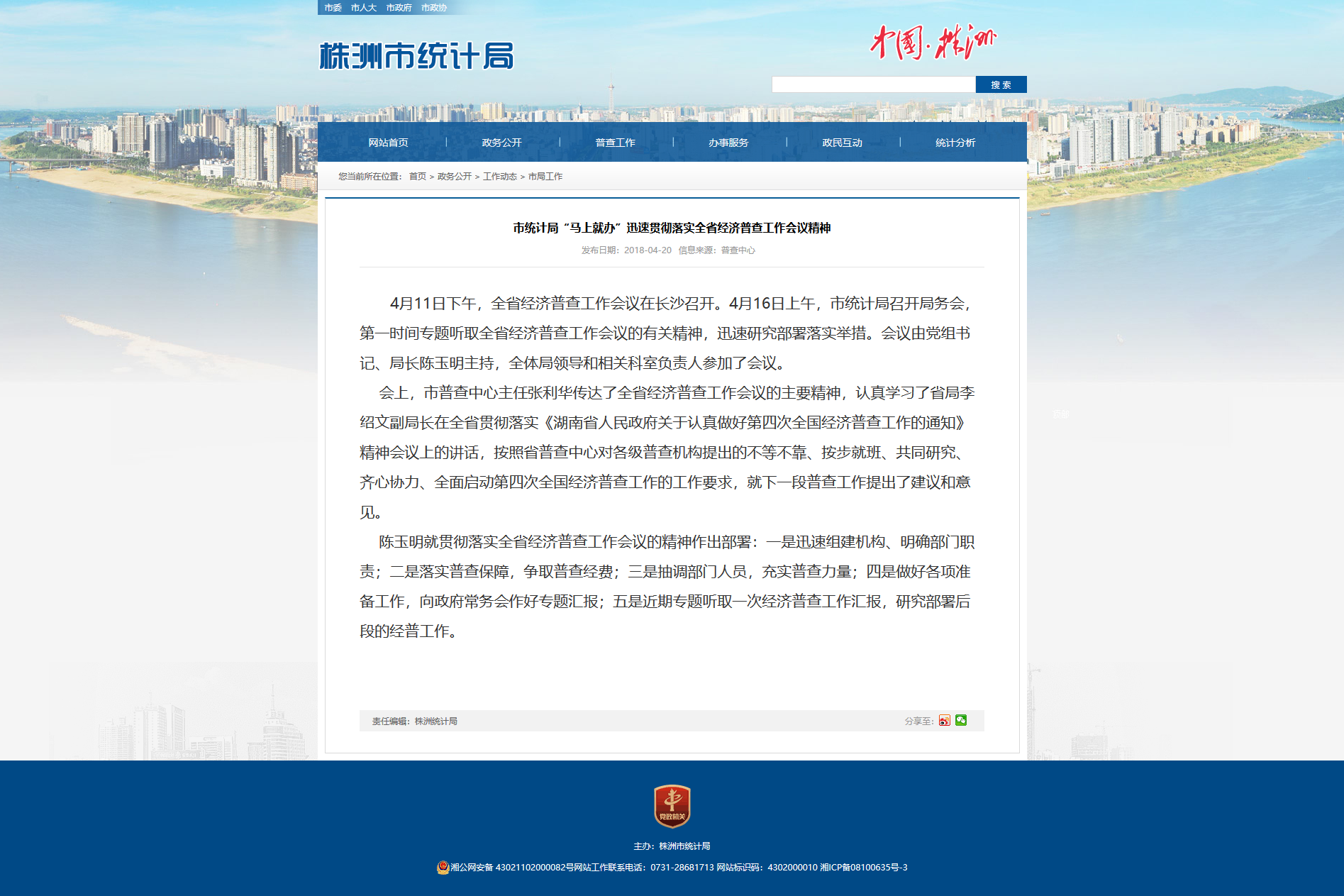 4月11日下午,全省经济普查工作会议在长沙召开。4月16日上午,市统计局召开局务会,第一时间专题听取全省经济普查工作会议的有关精神,迅速研究部署落实举措。会议由党组书记、局长陈玉明主持,全体局领导和相关科室负责人参加了会议。