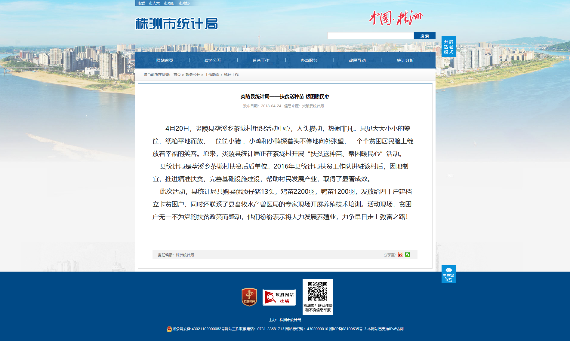 县统计局是垄溪乡茶垅村扶贫后盾单位。2016年县统计局扶贫工作队进驻该村后,因地制宜,推进精准扶贫,完善基础设施建设,帮助村民发展产业,取得了显著成效。