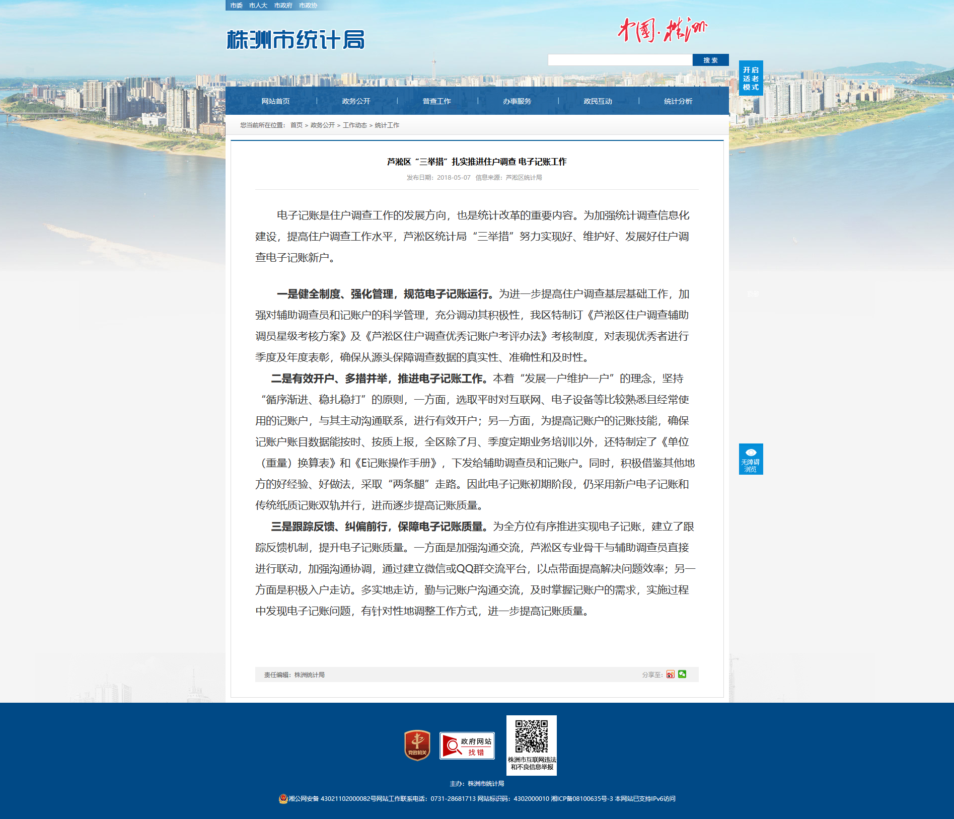 电子记账是住户调查工作的发展方向,也是统计改革的重要内容。为加强统计调查信息化建设,提高住户调查工作水平,芦淞区统计局“三举措”努力实现好、维护好、发展好住户调查电子记账新户。