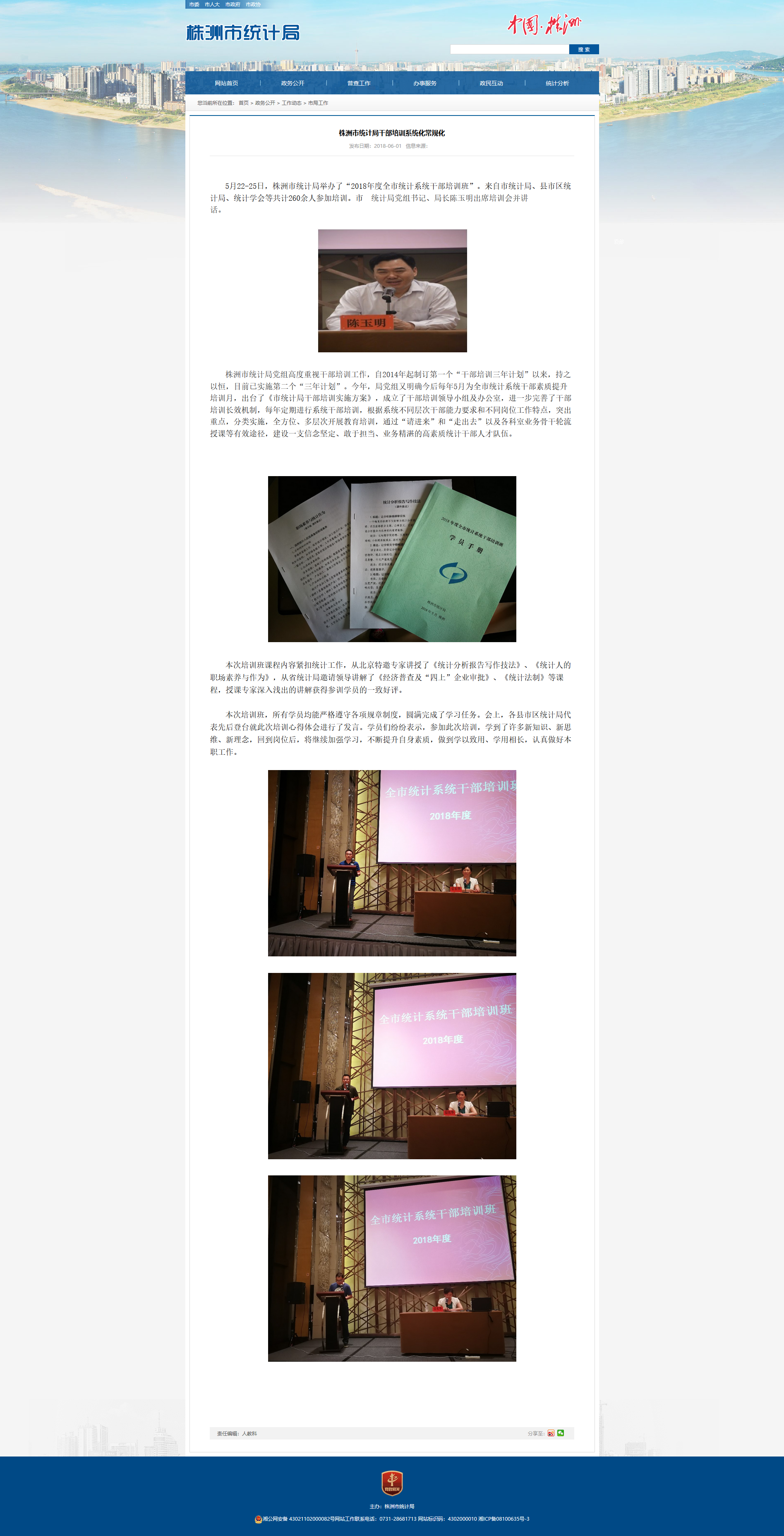 5月22-25日,株洲市统计局举办了“2018年度全市统计系统干部培训班”。来自市统计局、县市区统计局、统计学会等共计260余人参加培训。市 统计局党组书记、局长陈玉明出席培训会并讲话。