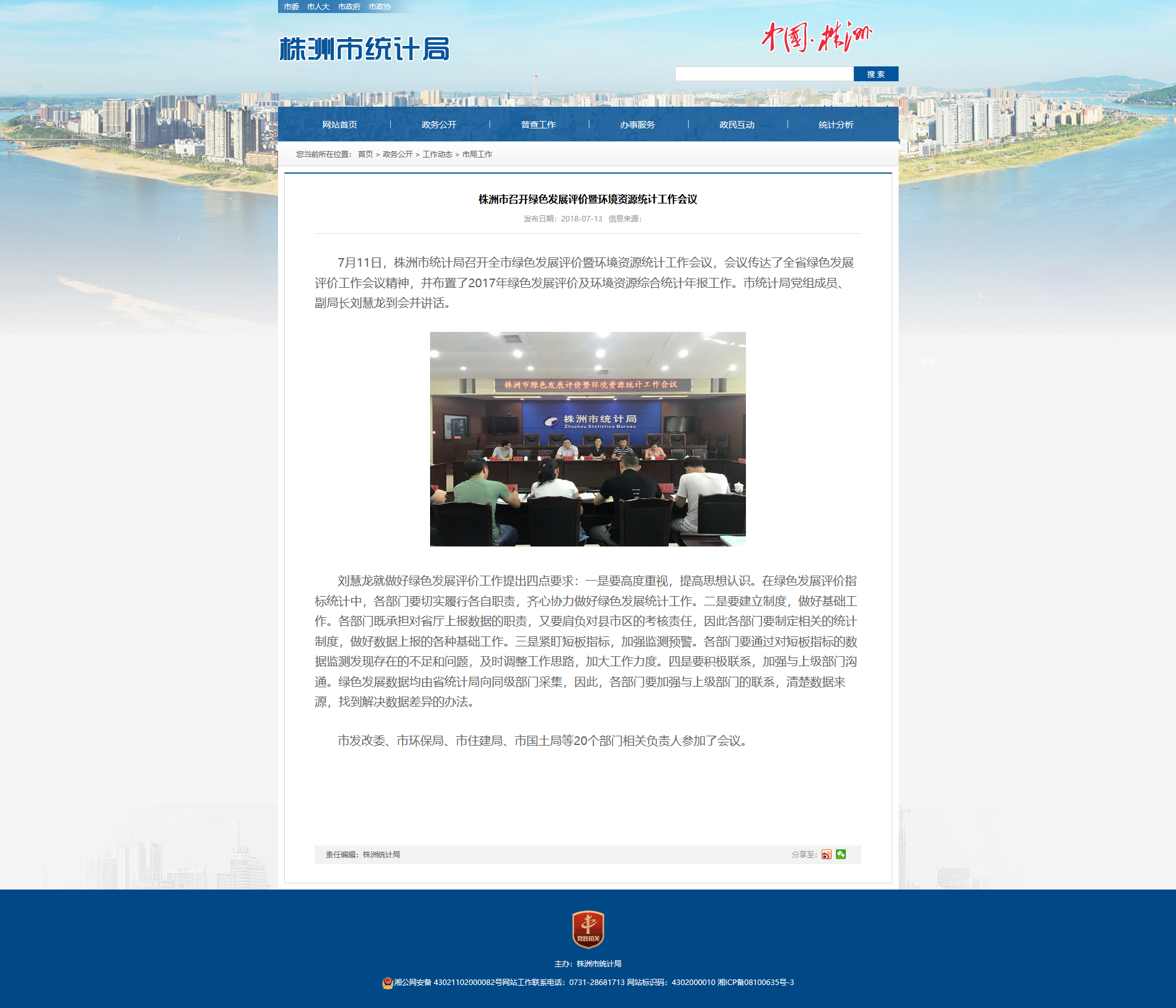 7月11日,株洲市统计局召开全市绿色发展评价暨环境资源统计工作会议,会议传达了全省绿色发展评价工作会议精神,并布置了2017年绿色发展评价及环境资源综合统计年报工作。市统计局党组成员、副局长刘慧龙到会并讲话。