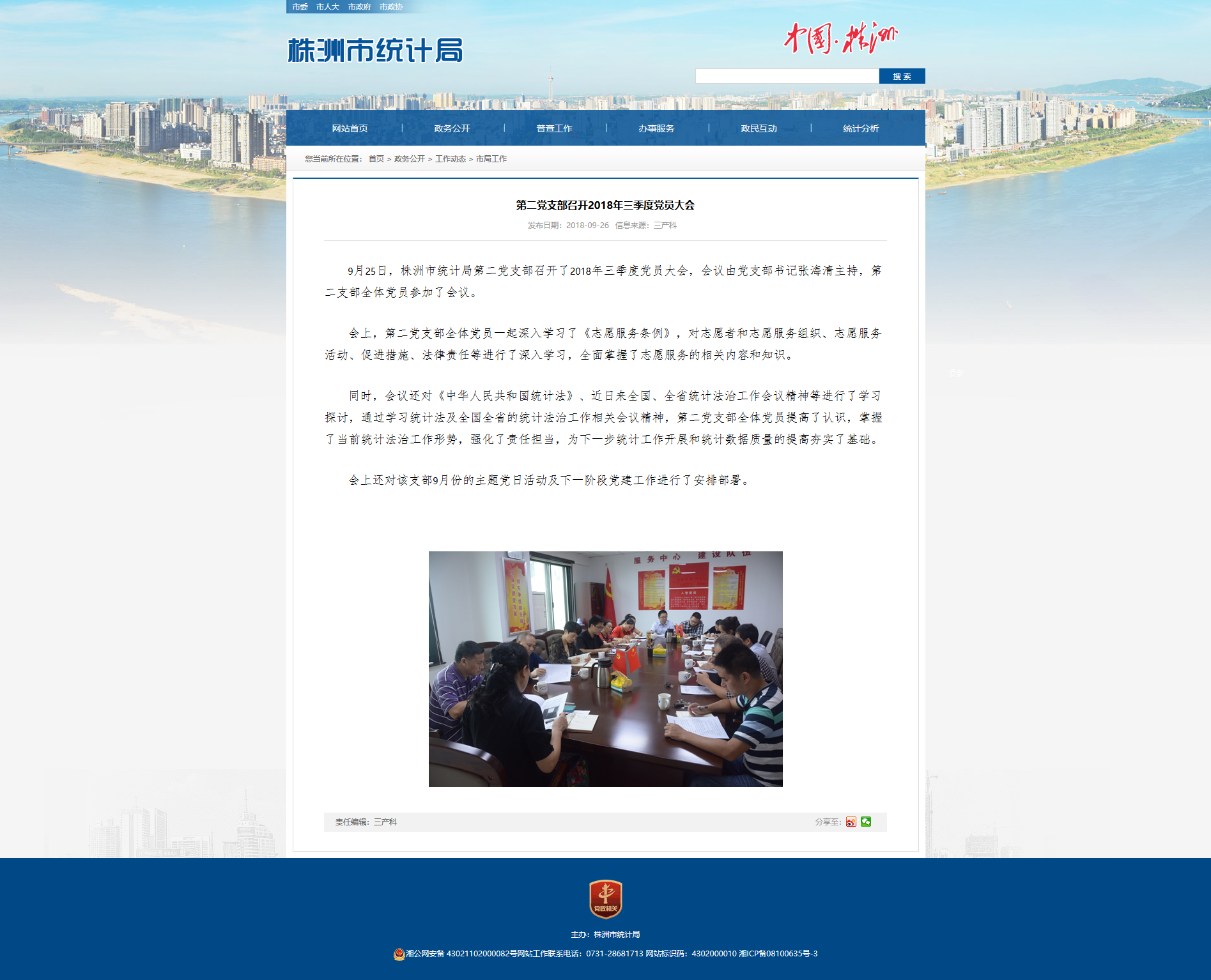 9月25日,株洲市统计局第二党支部召开了2018年三季度党员大会,会议由党支部书记张海清主持,第二支部全体党员参加了会议。