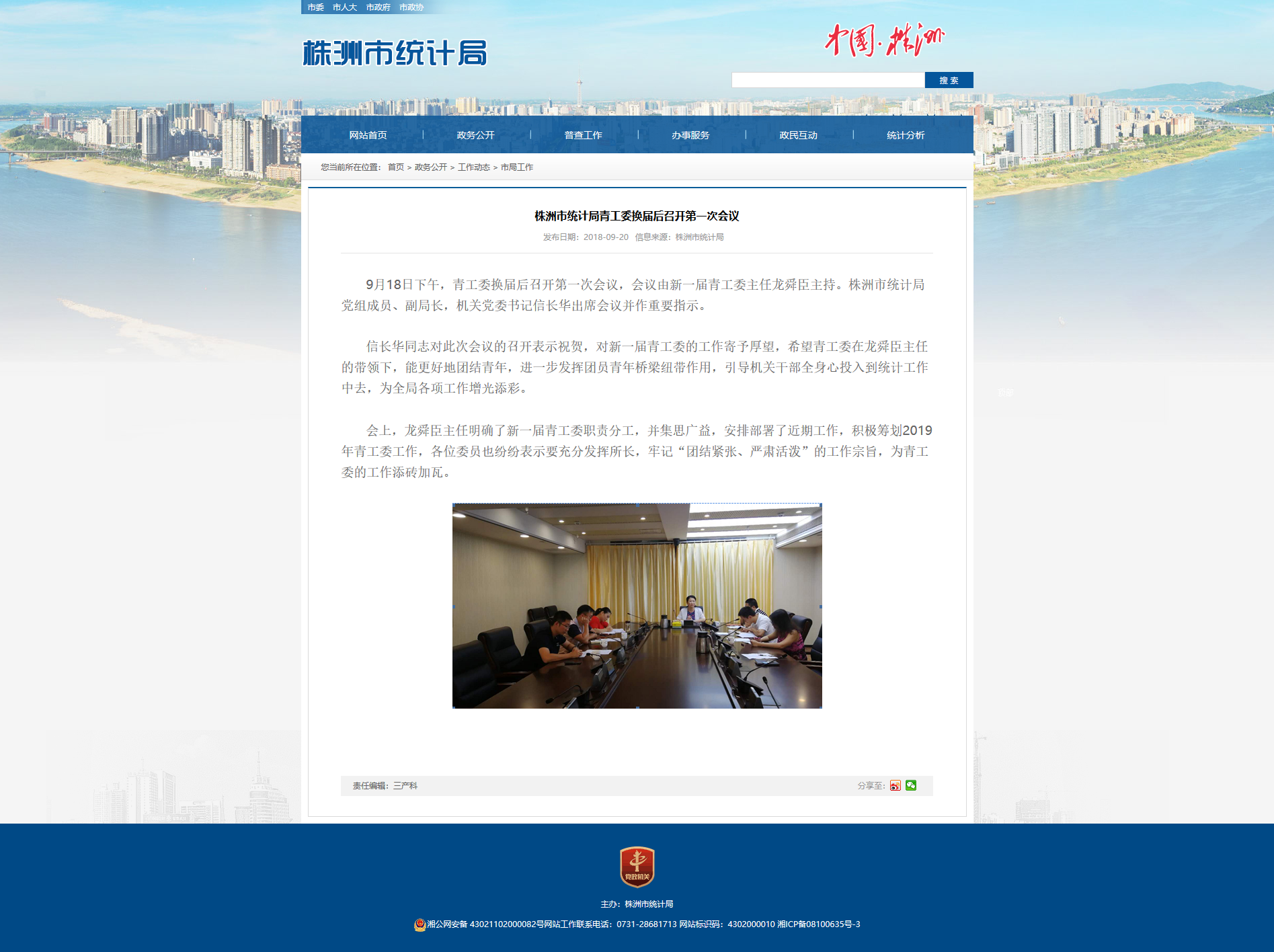 9月18日下午,青工委换届后召开第一次会议,会议由新一届青工委主任龙舜臣主持。株洲市统计局党组成员、副局长,机关党委书记信长华出席会议并作重要指示。