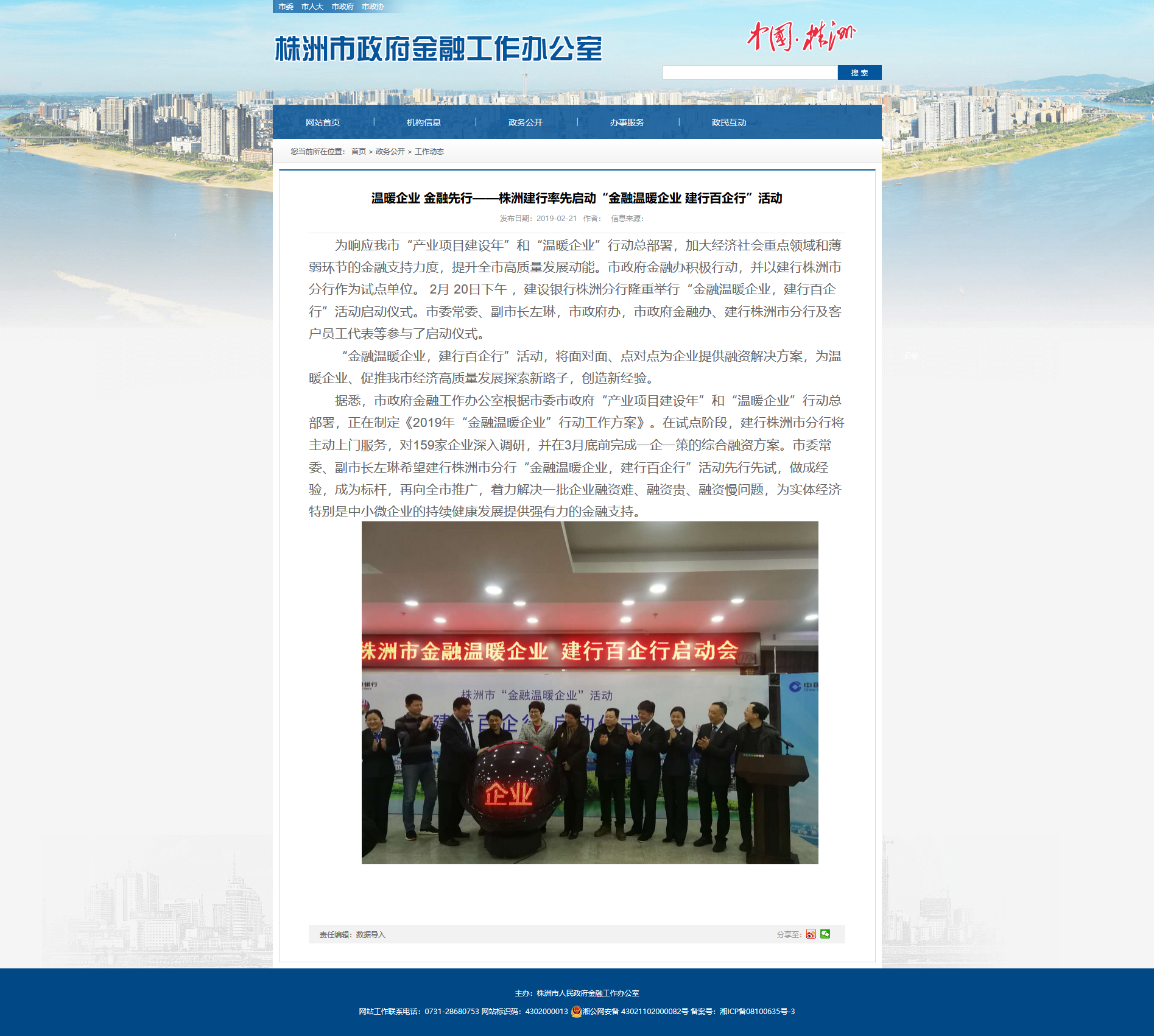 为响应我市“产业项目建设年”和“温暖企业”行动总部署,加大经济社会重点领域和薄弱环节的金融支持力度,提升全市高质量发展动能。市政府金融办积极行动,并以建行株洲市分行作为试点单位。