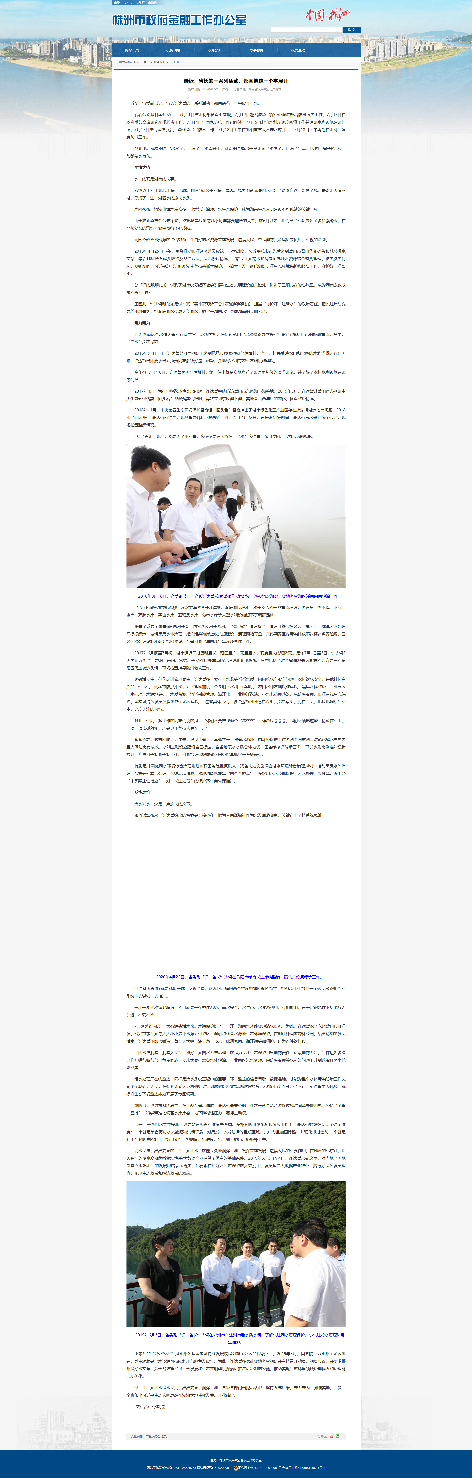 他曾6下洞庭湖乘船巡视,多次乘车巡查长江岸线、洞庭湖围堤和四水干支流的一些重点堤段,也在东江湖水库、水府庙水库、双牌水库、莽山水库、五强溪水库、皂市水库等大型水利设施留下了调研足迹。