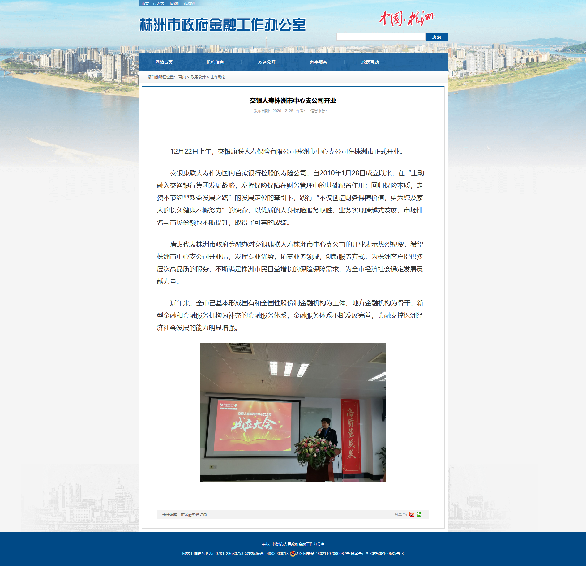 12月22日上午,交银康联人寿保险有限公司株洲市中心支公司在株洲市正式开业。