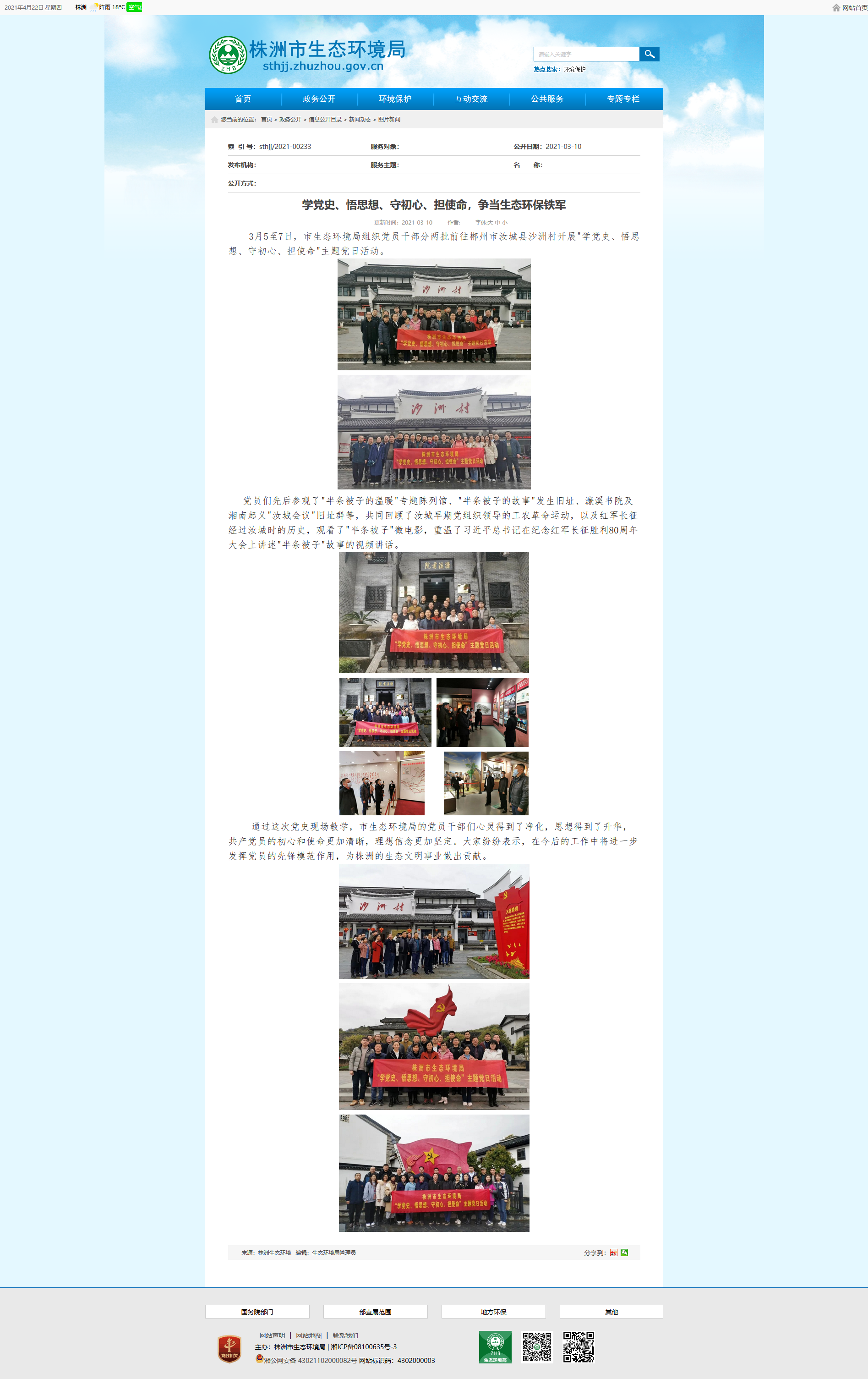 3月5至7日,市生态环境局组织党员干部分两批前往郴州市汝城县沙洲村开展"学党史、悟思想、守初心、担使命"主题党日活动。