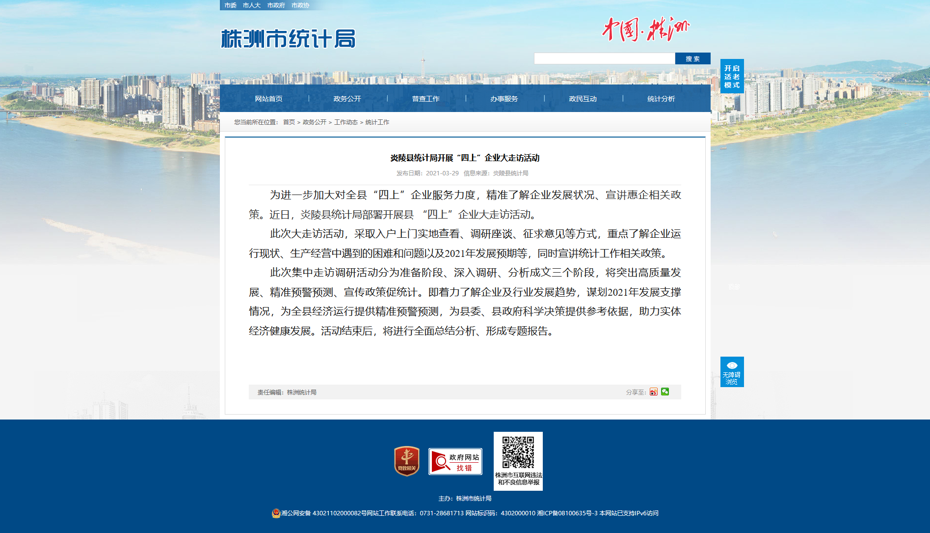 为进一步加大对全县“四上”企业服务力度,精准了解企业发展状况、宣讲惠企相关政策。近日,炎陵县统计局部署开展县 “四上”企业大走访活动。