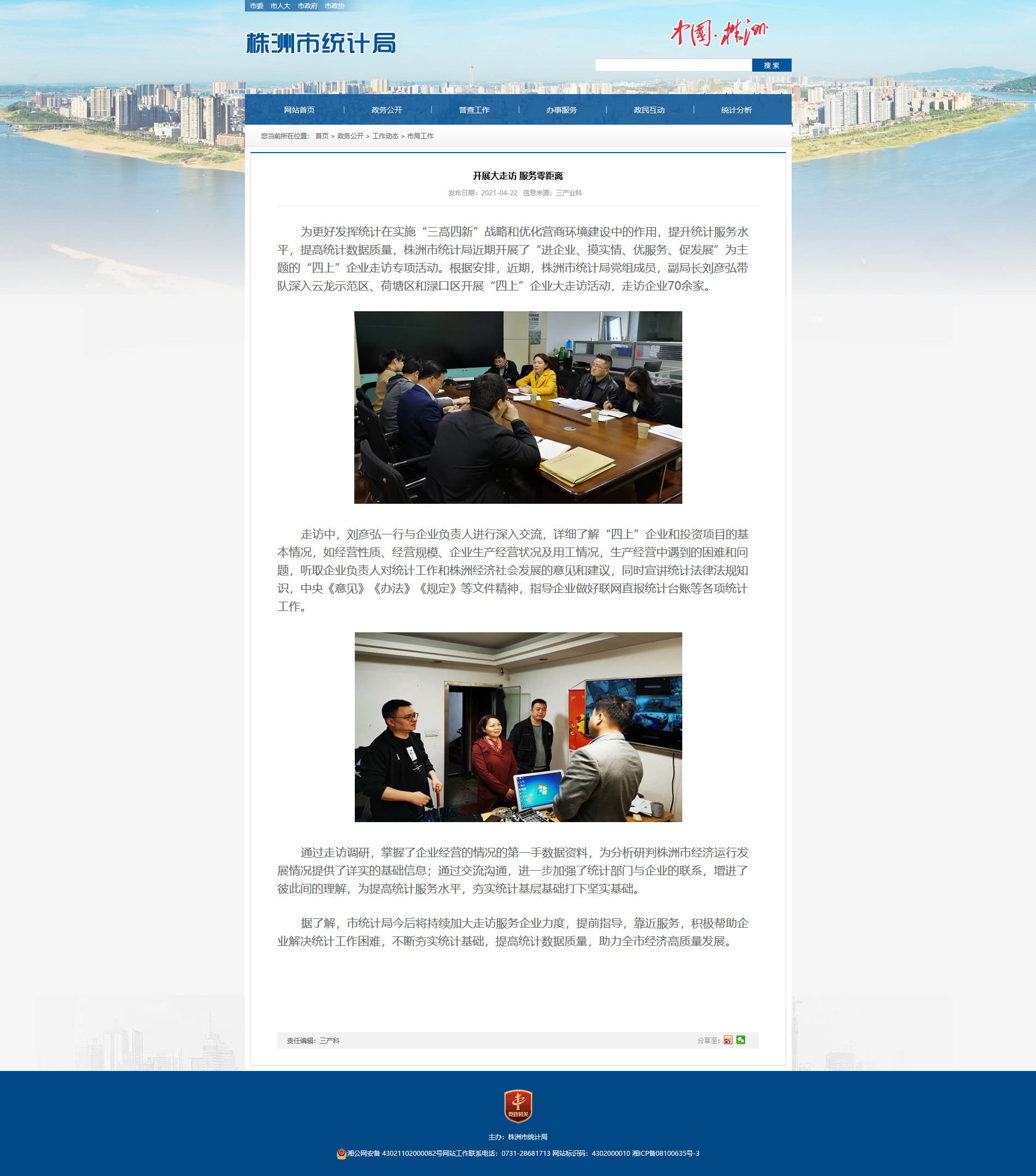 通过走访调研,掌握了企业经营的情况的第一手数据资料,为分析研判株洲市经济运行发展情况提供了详实的基础信息;通过交流沟通,进一步加强了统计部门与企业的联系,增进了彼此间的理解,为提高统计服务水平,夯实统计基层基础打下坚实基础。