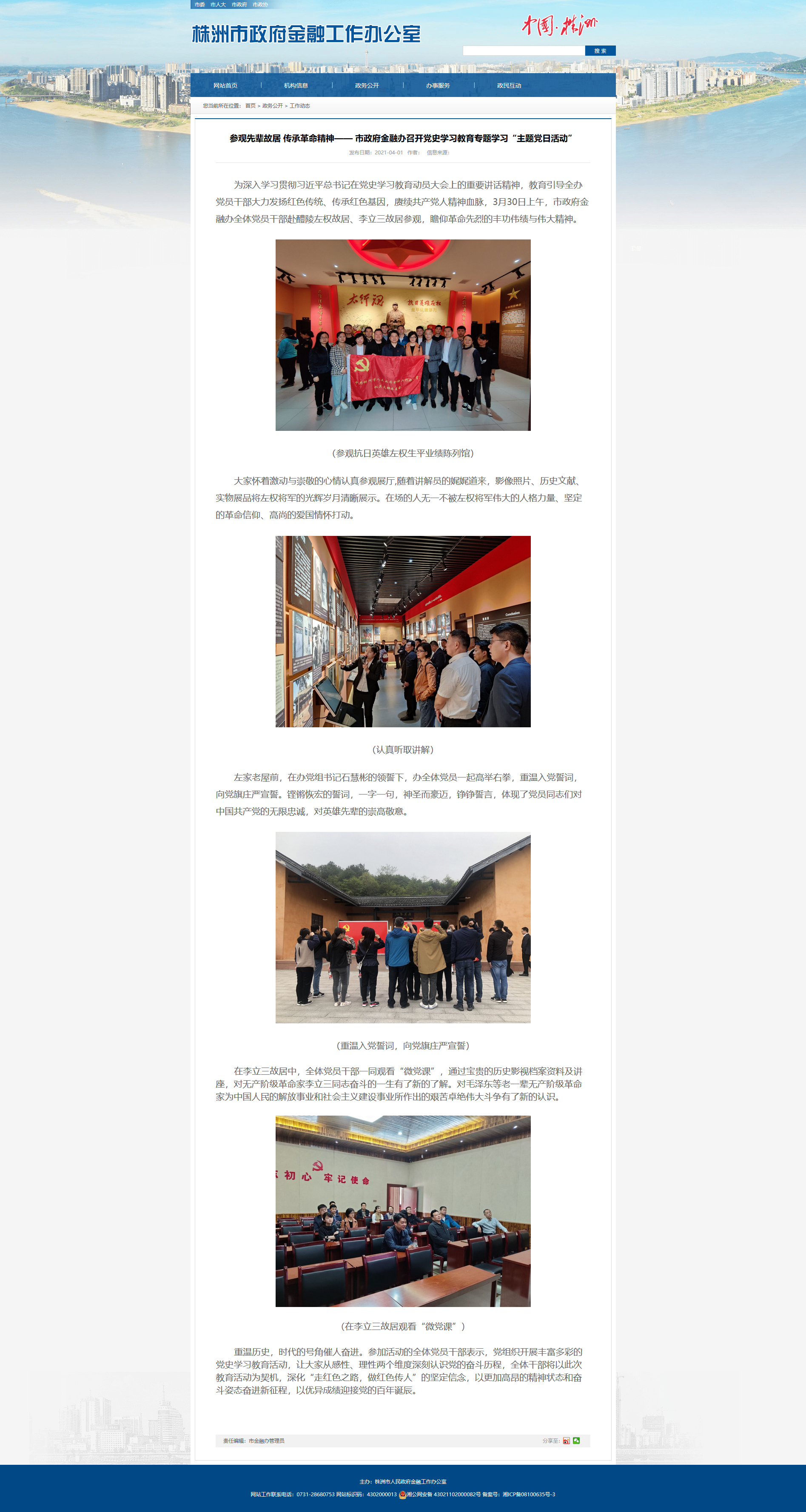 为深入学习贯彻习近平总书记在党史学习教育动员大会上的重要讲话精神,教育引导全办党员干部大力发扬红色传统、传承红色基因,赓续共产党人精神血脉,3月30日上午,市政府金融办全体党员干部赴醴陵左权故居、李立三故居参观,瞻仰革命先烈的丰功伟绩与伟大精神。