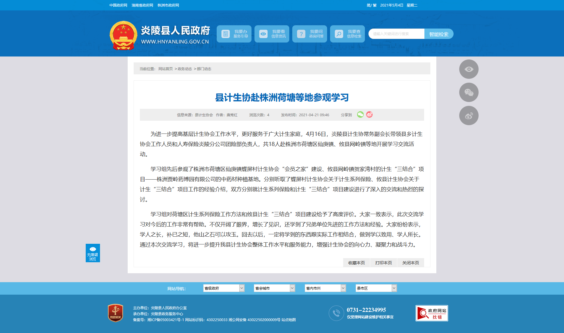 为进一步提高基层计生协会工作水平,更好服务于广大计生家庭,4月16日,炎陵县计生协常务副会长带领县乡计生协会工作人员和人寿保险炎陵分公司团险部负责人,共18人赴株洲市荷塘区仙庚镇、攸县网岭镇等地开展学习交流活动。