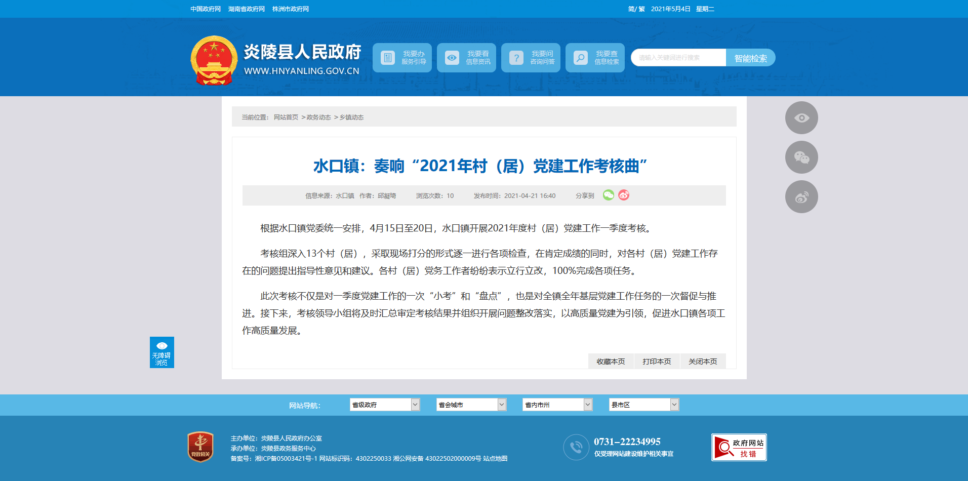 根据水口镇党委统一安排,4月15日至20日,水口镇开展2021年度村(居)党建工作一季度考核。