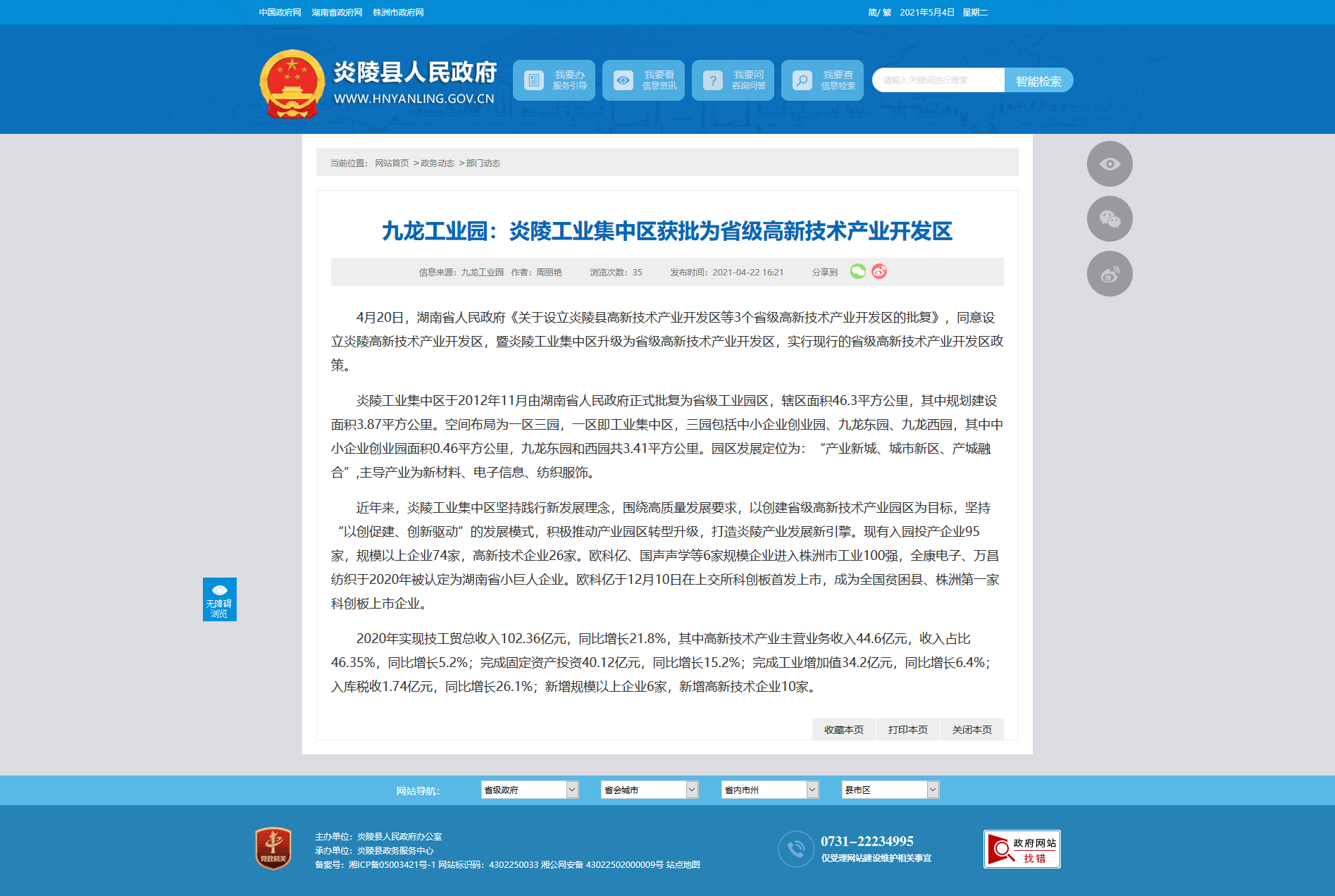 4月20日,湖南省人民政府《关于设立炎陵县高新技术产业开发区等3个省级高新技术产业开发区的批复》,同意设立炎陵高新技术产业开发区,暨炎陵工业集中区升级为省级高新技术产业开发区,实行现行的省级高新技术产业开发区政策。