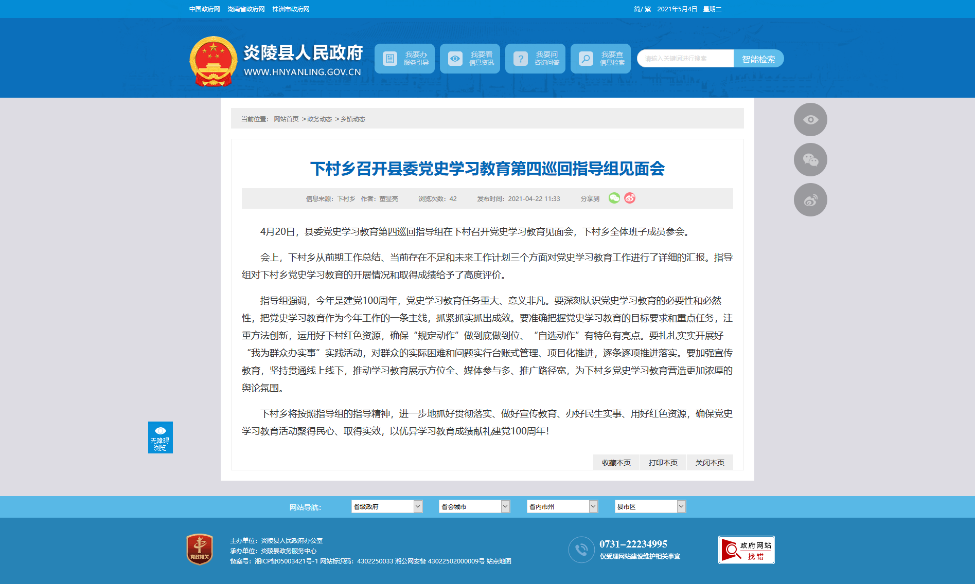 下村乡将按照指导组的指导精神,进一步地抓好贯彻落实、做好宣传教育、办好民生实事、用好红色资源,确保党史学习教育活动聚得民心、取得实效,以优异学习教育成绩献礼建党100周年!