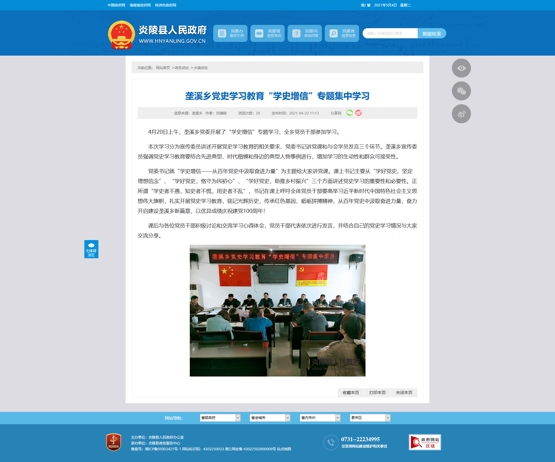 4月20日上午,垄溪乡党委开展了“学史增信”专题学习,全乡党员干部参加学习。