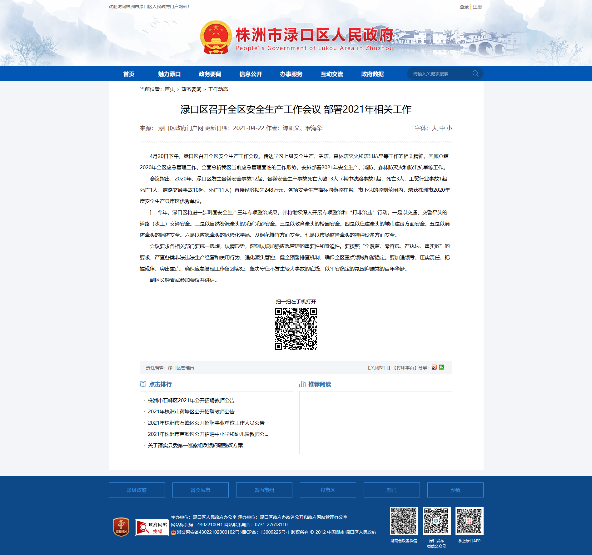 时间:2021-04-22 10:13:25 来源: 株洲市渌口区人民政府 来源截图