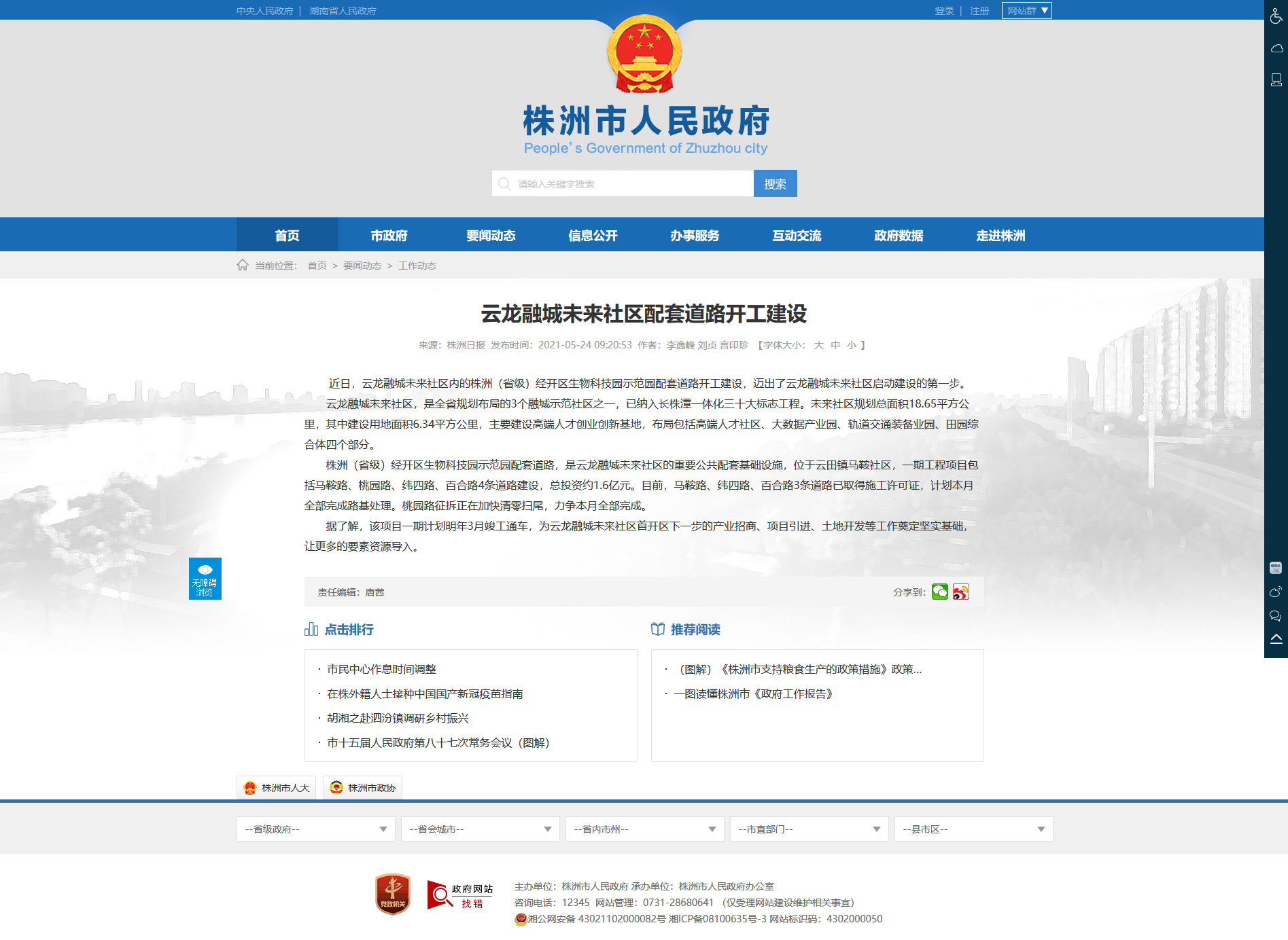 近日,云龙融城未来社区内的株洲(省级)经开区生物科技园示范园配套道路开工建设,迈出了云龙融城未来社区启动建设的第一步。