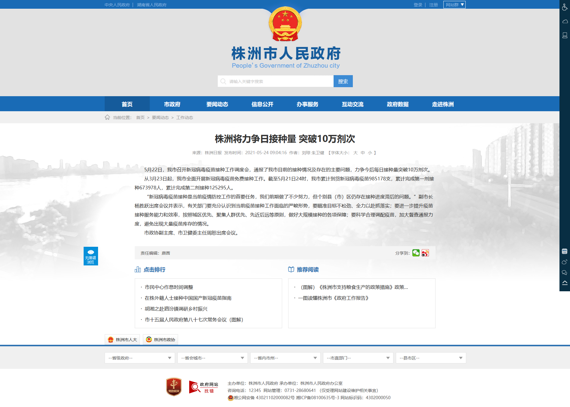 5月22日,我市召开新冠病毒疫苗接种工作调度会,通报了我市目前的接种情况及存在的主要问题,力争今后每日接种量突破10万剂次。