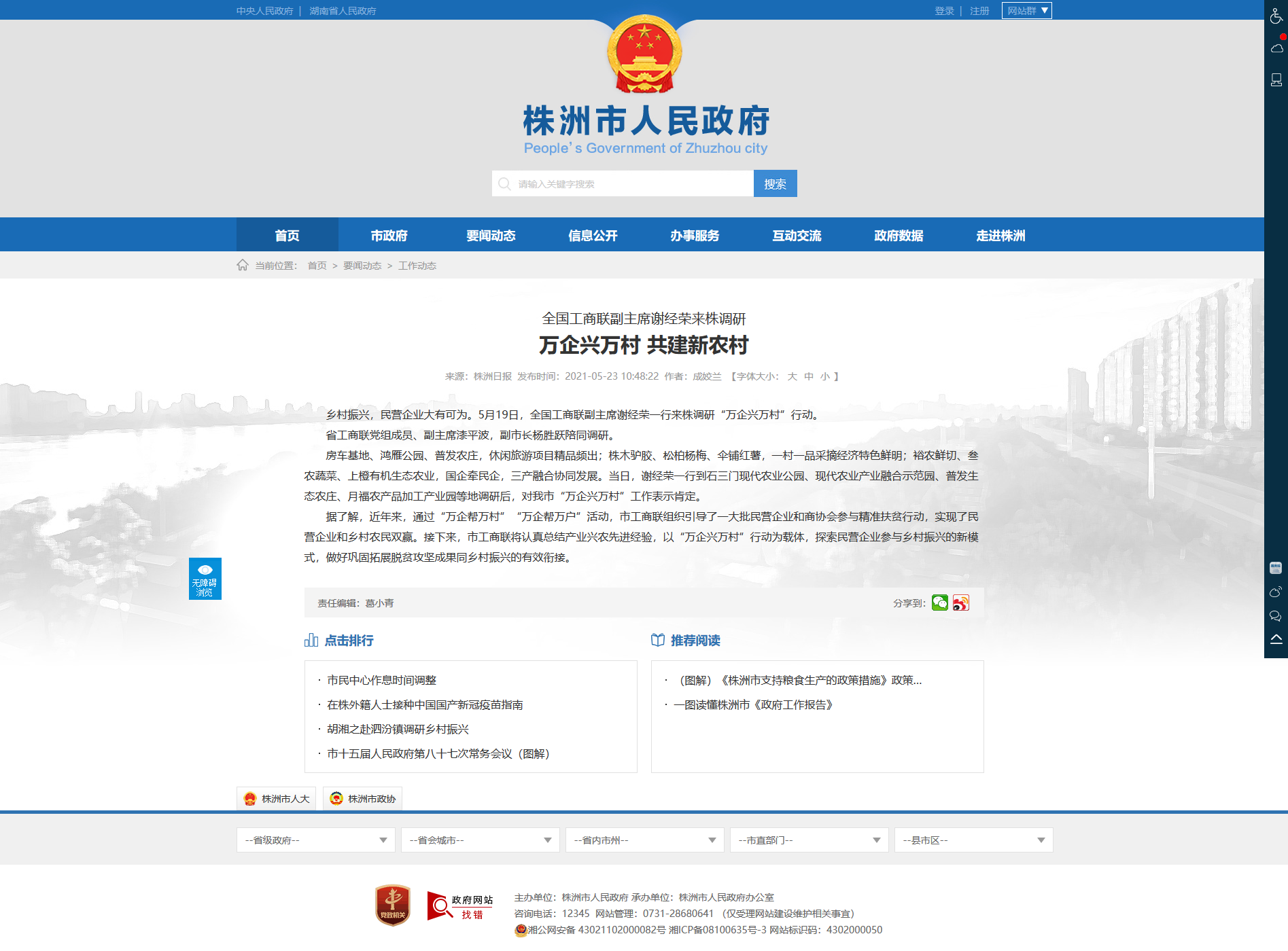 乡村振兴,民营企业大有可为。5月19日,全国工商联副主席谢经荣一行来株调研“万企兴万村”行动。