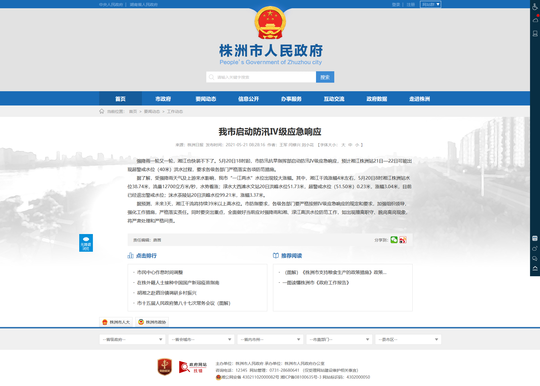 强降雨一轮又一轮,湘江也快装不下了。5月20日18时起,市防汛抗旱指挥部启动防汛Ⅳ级应急响应,预计湘江株洲站21日—22日可能出现超警戒水位(40米)洪水过程,要求各级各部门严格落实各项防范措施。