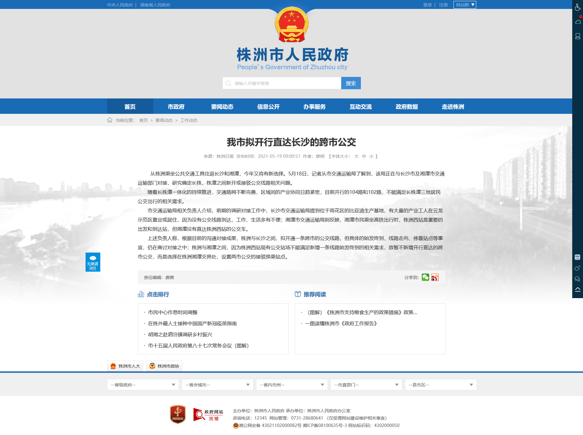 上述负责人称,根据目前的沟通对接成果,株洲与长沙之间,拟开通一条跨市的公交线路,但具体的始发终到、线路走向、停靠站点等事宜,仍在商讨对接之中;株洲与湘潭之间,因为株洲西站现有公交站场不能满足新增一条线路始发终到的相关需求,故暂不新增开行直达的跨市公交,而是选择在株洲湘潭交界处,设置两市公交的接驳换乘站点。